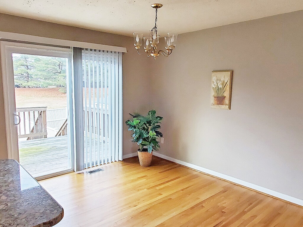 Beautiful condition. Hardwood throughout 1st floor, deck and fenced backyard. 3 bedrooms and 2 full baths upstairs. Unfinished basement for storage and laundry. 1200 sq ft finished. 600 sq ft of unfinished basement. 2 parking spaces. Backs to open space.