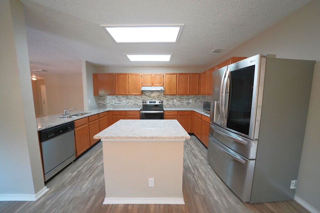 Beautifully maintained and thoughtfully updated one-story home now available in the quiet Kingswood Heights subdivision of San Antonio. This welcoming 3-bedroom, 2-bath residence offers over 1,600 square feet of comfortable living space with an open, airy floorplan ideal for both everyday living and entertaining. The home features wood laminate and luxury vinyl plank flooring throughout (no carpet) for easy maintenance and a modern feel. The kitchen is appointed with granite countertops and stainless steel appliances, including a refrigerator, and flows seamlessly into the living and dining areas. Both bathrooms have been remodeled and include granite countertops, new sinks, and updated fixtures. Additional upgrades include a water softener, updated light fixtures and ceiling fans, a stainless steel washer and dryer with pedestals, and an HVAC system equipped with a germicidal UV light to help reduce microbial growth. The home is also wired for security and includes a sprinkler system for both the front and back yards. Step outside to enjoy a large two-tier deck backing up to a greenbelt, offering privacy with no rear neighbors-ideal for entertaining, relaxing, or enjoying the outdoors. The property is clean, move-in ready, and thoughtfully designed for low-maintenance living. This property is homeowner-managed, and the owner is offering a one-time $400 credit toward the first month's rent for any accepted applicant. Conveniently located with quick access to Bandera Road, Loop 410, Loop 1604, and Culebra Road, this home offers an easy commute along with comfort and privacy. Schedule your showing today-this one will not last long.