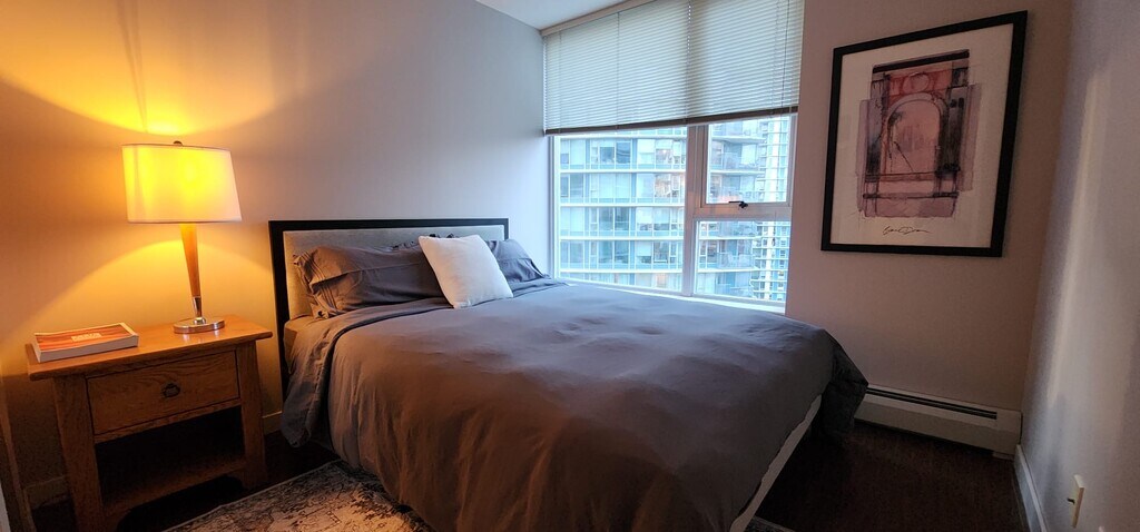 Move into executive living with this fully furnished, bright, southwest-facing corner unit featuring one bedroom plus a dedicated den. Enjoy stunning, expansive views of the North Shore Mountains and the bustling harbour. This turn-key residence offers exceptional convenience, including secure underground parking for one vehicle and a storage locker. World-class building amenities elevate your lifestyle, featuring an indoor swimming pool, state-of-the-art fitness center, jacuzzi, sauna, and an elegant residents' lounge. Benefit from the comfort and security of 24-hour concierge service. The location is unparalleled-just one block from Canada Place, the SkyTrain station, and the SeaBus terminal, offering immediate access to the Best of downtown.