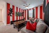 Discover this splendid 6-bedroom sanctuary, where elegance meets relaxation, promising an unforgettable family escape. This expansive haven seamlessly merges living, dining, and kitchen spaces, catering to your every whim. Hosting up to 15 guests, it's a perfect family getaway. Yet, the true allure resides in the themed bedrooms – a Mickey family room, Star Wars, Mario Bros, and Frozen wonders await. A private pool invites you to unwind. Nestled in the heart of Champions Gate, the ultimate Kissimmee resort, your family is in for an extraordinary journey. Welcome to this captivating 6-bedroom home, a true masterpiece in comfort and design. With the capacity to accommodate up to 15 guests, this haven ensures a delightful stay. As you step inside, you'll be greeted by a spacious living room seamlessly merging into the dining area and a fully equipped kitchen. The true magic lies in the themed bedrooms – a Mickey family room, Star Wars, Frozen, and Mario Bros-themed delights await, creating a world of imagination for everyone. Outdoors, a private heatable pool invites you to unwind and enjoy the splendid view. On the first floor, a queen bedroom with a private bathroom offers convenience and privacy. Upstairs, the family room takes you to the enchanting realm of Mickey, and you'll find the other 5 bedrooms. The master king-size bed suite exudes luxury, while a second king bedroom and the Star Wars themed room, with a double and a single bed, are equally inviting. The Frozen bedroom features two single beds, and the Mario Bros room offers two double beds, promising a comfortable retreat. Completing your experience, a laundry room with washer and dryer, free Wi-Fi, free parking, and a welcome kit with essential amenities await. Your dream vacation starts here! Heating the pool is a paid service and there is also a fee charged to use the barbecue grill. Champions Gate Resort is a resort-style community that offers every imaginable amenity for a blissful stay. It features an impressive clubhouse with a variety of courts and outdoor activities like tennis, beach volleyball, and a golf course, while its restaurant and fitness center will help you stay refreshed and fit. Its swimming pool complex is perfect for a splashy day, with slides, a lazy river, and a kids splash pool. Plus, the resort is just 20 minutes away from Disney Parks, ensuring plenty of opportunities for fun and adventure. Shopping, dining, and entertainment are also within reach, with stores, restaurants, and supermarkets nearby. It's the perfect place for a family getaway. Quiet hours are between 22:00 and 8:00. Replenishment of bathroom and kitchen amenities is the guest's responsibility.