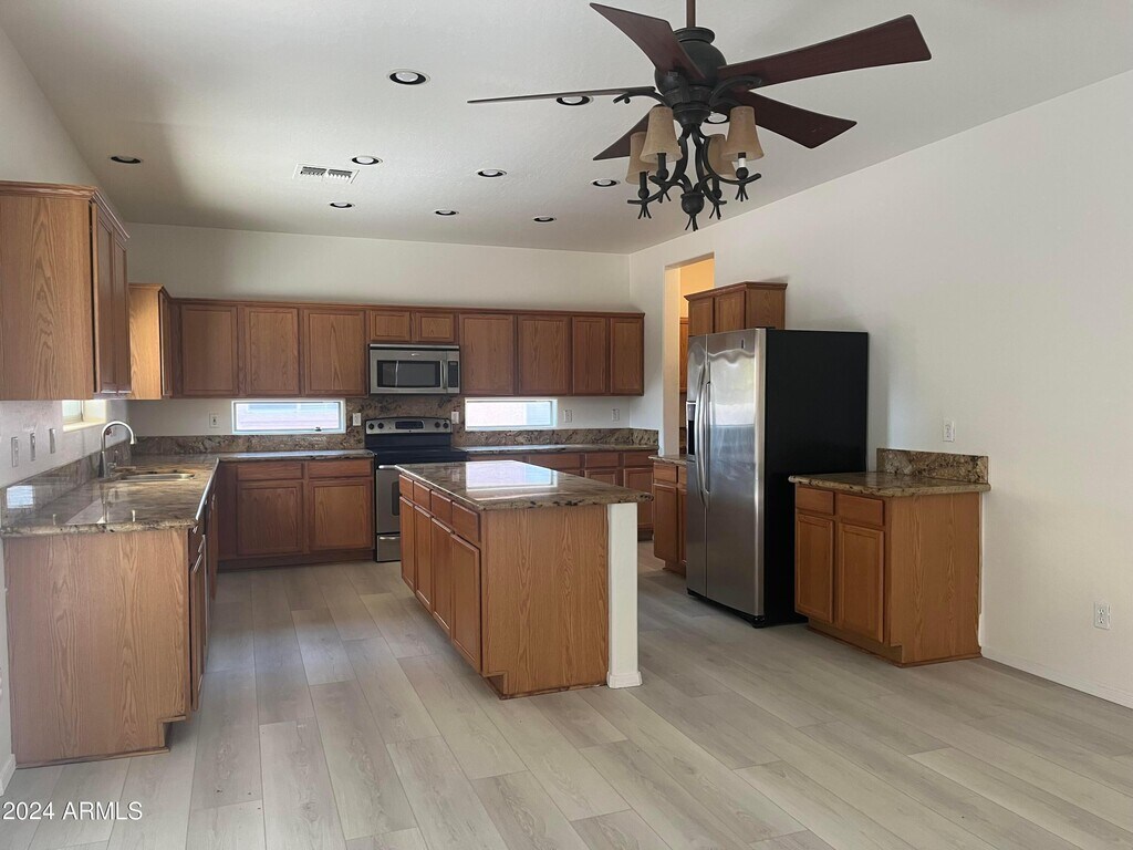 Welcome to your dream home in the community of Sun Groves,located in South Chandler. This spacious 5-bedroom,3.5-bathroom residence boasts a sprawling floor plan complemented by fresh neutral color paint and new luxurious vinyl plank flooring throughout. Upon entering,the home exudes a welcoming ambiance,beginning with a formal living room and dining area. The first floor features a conveniently located bedroom an a full bathroom. The heart of the home is the gourmet kitchen,adorned with granite countertops,a pantry for ample storage,and a central island. Upstairs is the huge loft,masterbedroom and other bedrooms. Located within the highly sought-after Chandler Unified School District.
