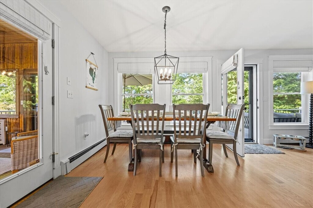 Experience the serene beauty of Sebago Lake with this charming 3-bedroom, 2-bathroom lakefront home. Designed for comfort and relaxation, this property offers stunning lake views from the open-concept living room and kitchen, leading to a patio and deck perfect for gatherings. Enjoy direct access to the large waterfront lot, ideal for games or simply unwinding by the water. Boaters will appreciate the well-maintained dock. The main floor features one bedroom, one bathroom, and a convenient laundry area. The second floor houses two additional bedrooms and a bathroom, with the main bedroom offering picturesque lake views. The basement provides extra space with a sitting area and a bunkroom. For those looking to explore, The Naples Causeway is just 2 miles away, while Portland and North Conway are about 30 miles away. The property includes a canoe and two kids' kayaks for your enjoyment. Dogs are welcome with a $125 pet fee. The property is equipped with internet, a washer and dryer, a dishwasher, heat pumps for AC, and a gas grill. Enjoy evenings by the fire pit with provided outdoor furniture. Located within a 15-minute drive to three wedding venues in Sebago, this home offers both tranquility and convenience. The surrounding area provides ample opportunities for exploration and adventure. Smoking is prohibited on the property. The water supply is from a well, and coffee is available via a drip machine.