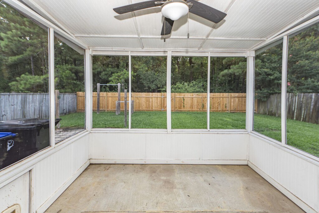 - 1120 SQFT. - Ranch style home in quiet residential neighborhood - Open floor plan with eat in kitchen & large family room for entertaining - Wide plank dark laminate flooring in family room, kitchen & hallway - Master bedroom with ensuite bathroom, offering vanity & shower/tub combo - Additional bedrooms share hallway bathroom & are carpeted throughout - Laundry area with washer/dryer hook ups; leads to single-car garage - French doors off eat in dining area lead to large screened in porch - Backyard offers privacy fence with a double gate; backs up to woods for extra peace & privacy - Thermal windows/doors & ceiling fans in every room - Within desired Dorchester 2 school district - Close to shopping & restaurants - Pets negotiable