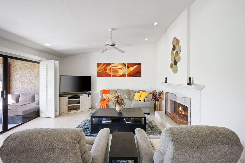 Opportunity to enjoy all the Desert Has to offer at this Turnkey Vacation Rent Ready fully Furnished Condo located in Chaparral CC. Open Floor Plan with with a gourmet Kitchen with Golf Course and Mountain Views from the patio. Chaparral CC offers an 18 Hole Golf Course designed by Ted Robinson,tennis and pickle courts,21 pools and spas. 24- hour gated Chaparral Country Club. Minimum stay for this turnkey unit is 90 days for a Short Term Rental. .Price listed is for one year Lease Short term Rental Price to be negotiated based on # Month Requested for Seasonal Vacation Rental .