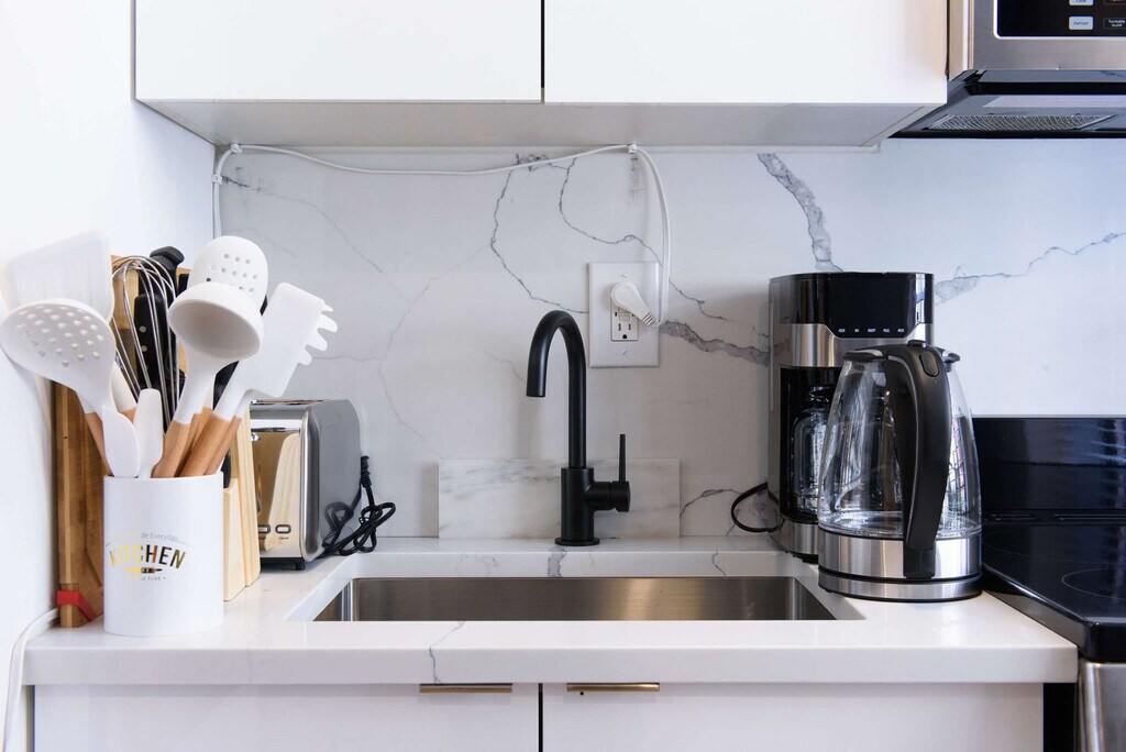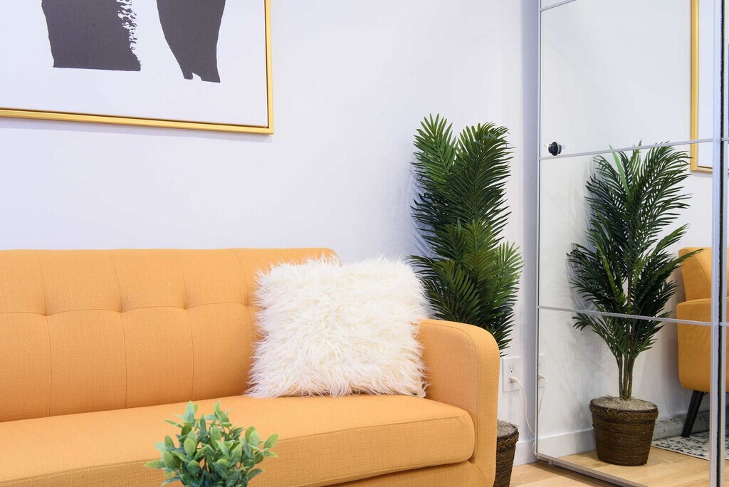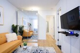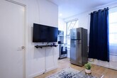 Welcome to your perfect Manhattan retreat! This fully furnished 1-bedroom apartment offers a blend of comfort, style, and convenience in a boutique walk-up building. Located in the heart of the Lower East Side, you’ll be just steps away from Soho, top restaurants, bars, coffee shops, and shopping stores. The apartment features hardwood floors, a comfortable marble bathroom with a standing shower, a spacious living room with a full-size sofa, a 48' smart TV, and high-speed Wi-Fi. The warm and cozy kitchen is equipped with a full-size fridge, oven, stove, microwave, and dishwasher, perfect for preparing meals and snacks. The bedroom has a full-size bed with a memory foam mattress for restful sleep. This secure boutique building offers a safe and quiet walk-up residence in a prime location, close to everything, including subways, cafes, restaurants, grocery stores, theaters, gyms, shopping, music shops, and NYU hospitals. This brand new apartment in the Lower East Side of Manhattan offers guests the chance to stay in comfort and style. The modern and sleek design of the space provides a comfortable and inviting atmosphere. The living room is equipped with a comfortable workspace, a 4K UHD SmartTV, and an XL closet for your convenience. The fully accessorized kitchen features all the necessary appliances and cookware for your convenience. The apartment is fully furnished with all new furniture, making it move-in ready, and guests will receive clean linens and towels upon arrival for added comfort. Under 15-pound dogs are allowed with owner approval and a $350 pet fee. Only one pet is allowed. Lower East Side is the most vibrant Manhattan neighborhood of New York, with plenty of restaurants, cafes, bars, galleries, and shops. Walk to SoHo or over the spectacular Manhattan Bridge. The LES of Manhattan is full of history and culture, making it one of the most interesting parts of NYC. Packed with hipster-baiting cafes, galleries, and shops on every corner, the artistic and bohemian spirit that characterized the neighborhood persists, and everything from the coffee shops to the bars has a unique and creative edge. There are endless things to do and see here! F, M, J, and Z subway stations are within short walking distance. New York City's heating season is until the end of May. Beginning around mid-April, window air conditioning will be installed in the apartment. Guests can contact the host for any problem or question they may have, and any issue will be handled personally by the host or their team. Personal check-in and welcome home tour are provided to every guest, with remote check-in also available for COVID safety. No smoking and no parties are allowed. Please keep quiet and respectful for your neighbors and follow trash recycle rules. The living room is equipped with a comfortable workspace and high-speed Wi-Fi throughout the apartment. A laptop computer is not included. [SI]