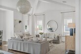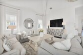 Experience the pinnacle of luxury living at 69 Cypress Dunes, where elegance and serenity merge within an exclusive gated community. This exquisite modern home spans 3,564 square feet, offering four bedrooms plus a study, and four and a half bathrooms, all meticulously designed with contemporary finishes. As you enter the foyer, you're immediately embraced by an atmosphere of refined sophistication. The second floor is the heart of entertainment, with a spacious living room featuring a striking Venetian plaster fireplace, custom drapery, vaulted ceilings, and a stunning designer globe light fixture. Just off the living room, a dining area with a well-appointed bar, ice maker, and wine fridge, flows seamlessly into the gourmet kitchen.