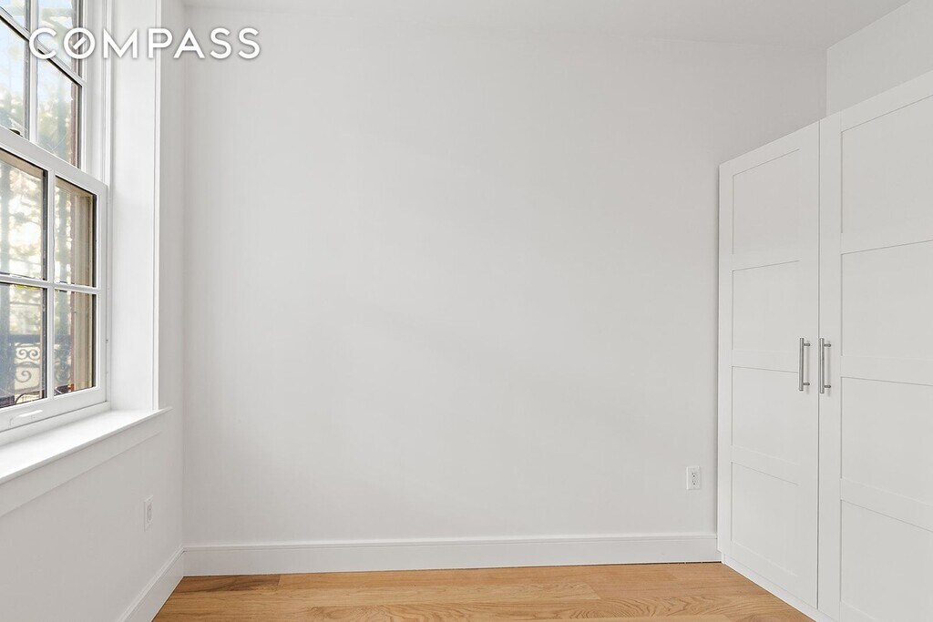 Set on a quiet cobblestoned corner of historic Vinegar Hill – and just moments from DUMBO, the Brooklyn Bridge Park waterfront, Downtown Brooklyn, and Navy Yard – this modernized 1817 landmarked townhouse with its own PRIVATE TWO-CAR GARAGE seamlessly blends historic character with contemporary appointments. One of just three original rowhouses still standing with intact storefront details, the home has just received a brand new, full-scale renovation. •• Also available for shorter-term lease options — please inquire for details. •• Spanning three stories plus a partially finished lower level – approx 3200 ft in total – the meticulous upgrades include: all-new electrical, plumbing, zoned climate control, insulated walls and windows, white oak hardwood flooring, custom millwork, quartz countertops, and brand-new energy-efficient appliances and fixtures. The parlor level features an open living / dining space accented by a ventless Hearth fireplace, a custom eat-in kitchen with direct yard access, and a powder room. A restored central stair crowned by a skylight leads to the upper two floors, which are sunswept and quiet. The generously proportioned bedrooms are bright and airy and span the width of the home, with three windows at both front and rear, complemented by walk-in closets or alcove storage as well as two oversized bathrooms. The multipurpose lower level has a new washer/dryer, utility sink, abundant storage, and access to the rear yard. Outdoors, the full-depth backyard is quaint and private while providing access to the detached garage – fronting semi-private Harrison Alley – that offers rare, secure parking. Vinegar Hill retains a distinctive, tucked-away charm where local favorites like Vinegar Hill House and Café Gitane sit alongside DUMBO’s cultural, recreational and retail highlights: 85-acre Brooklyn Bridge Park, St. Ann’s Warehouse, Jane’s Carousel, Time Out Market, among others. Just one stop into Manhattan on the F train, nearby to commuter ferry and A & C lines. Some photos virtually staged. Pets considered on a case-by-case basis. First Month's Rent & One Month Security Deposit due at lease signing Credit Screening: $20/per applicant
