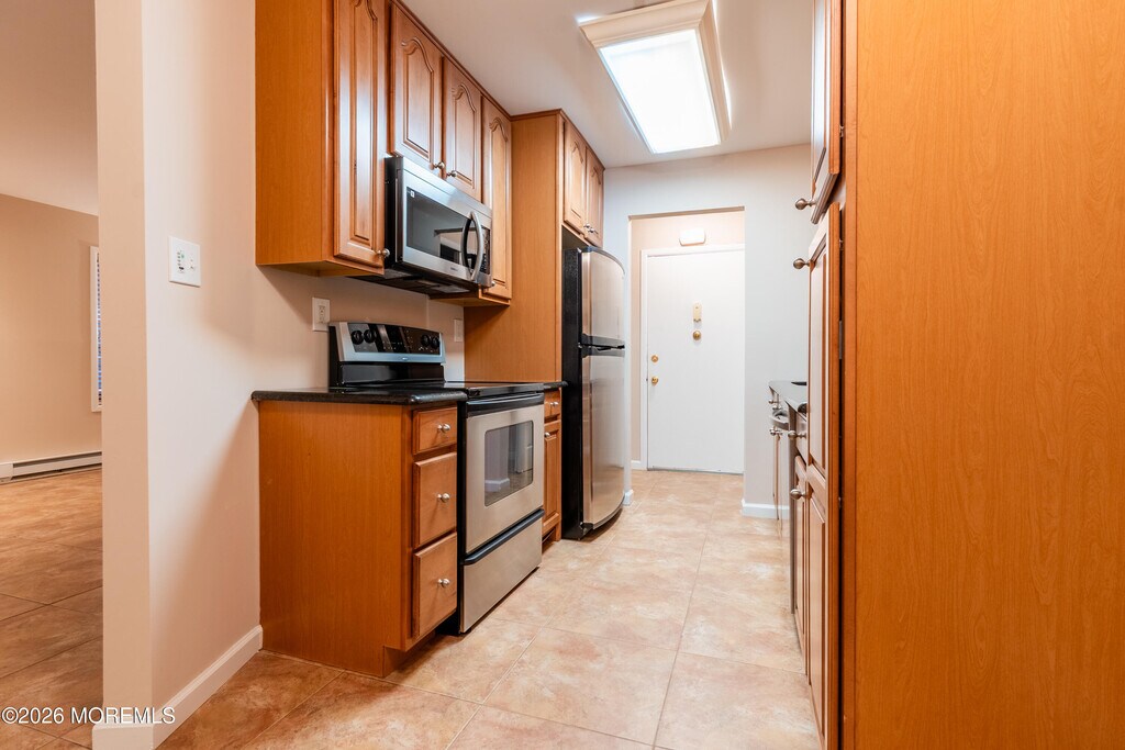 Tucked away on a quiet street,this beautifully maintained Lower Level 2-bedroom,1-bath condo is located in an active 55+ community. This unit is just steps from the walkway and common areas. Featuring fully ceramic tile flooring throughout,an enclosed porch,and assigned parking directly in front,this home offers comfort and convenience. The spacious layout includes both a dining area and an eat-in kitchen,along with brand-new top-load washer,microwave,and A/C units. The large primary bedroom features a walk-in closet. Residents enjoy resort-style amenities,including a clubhouse,ballroom,theater,arts & crafts studio,woodworking shop,pools,sauna,and more. Bus service is steps away,providing easy access to shopping,medical facilities,and Route 9 express service to NYC