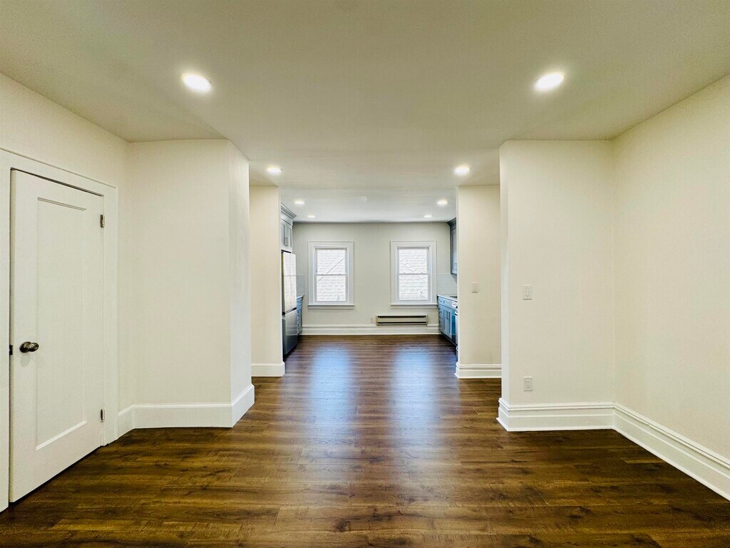 Beautifully renovated two bedroom apartment in a great location, offering parking, washer and dryer, and an impressive amount of storage throughout the entire unit. This apartment truly stands out for its exceptional storage space, with large built in areas along the walls that provide plenty of room for organization and can even be used as additional functional space. The unit is very bright with many windows that bring in abundant natural light. The layout of the apartment is open and inviting, connecting the kitchen, dining area, and living room in a comfortable open concept design making the space both functional and welcoming. The apartment features beautiful hardwood floors, modern new cabinetry, and stainless steel appliances including a dishwasher. Both bedrooms are spacious and feature extensive closet space on both sides of the walls, creating large storage areas. The bathroom is also nicely updated, bright, and clean. The location is truly a commuter’s dream.The light rail station (train) is just a couple blocks away with direct access to Exchange Place and the PATH train, making Jersey City Downtown and Manhattan only minutes away. A bus stop is conveniently located right on the corner, and you are just minutes from the NJ Turnpike, Route 440, and the Bayonne Bridge to Staten Island, offering seamless regional access. Enjoy close proximity to major shopping centers including Costco, LIDL,Walmart, ShopRite, and Stop & Shop, along with popular restaurants and community parks. Don’t miss this excellent opportunity, schedule your private showing today!