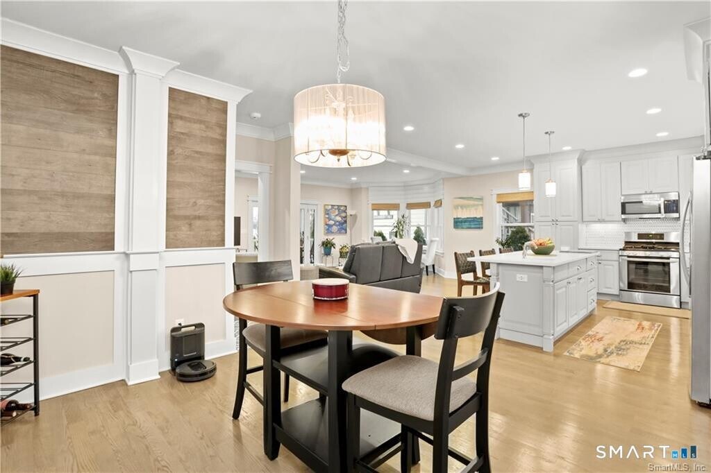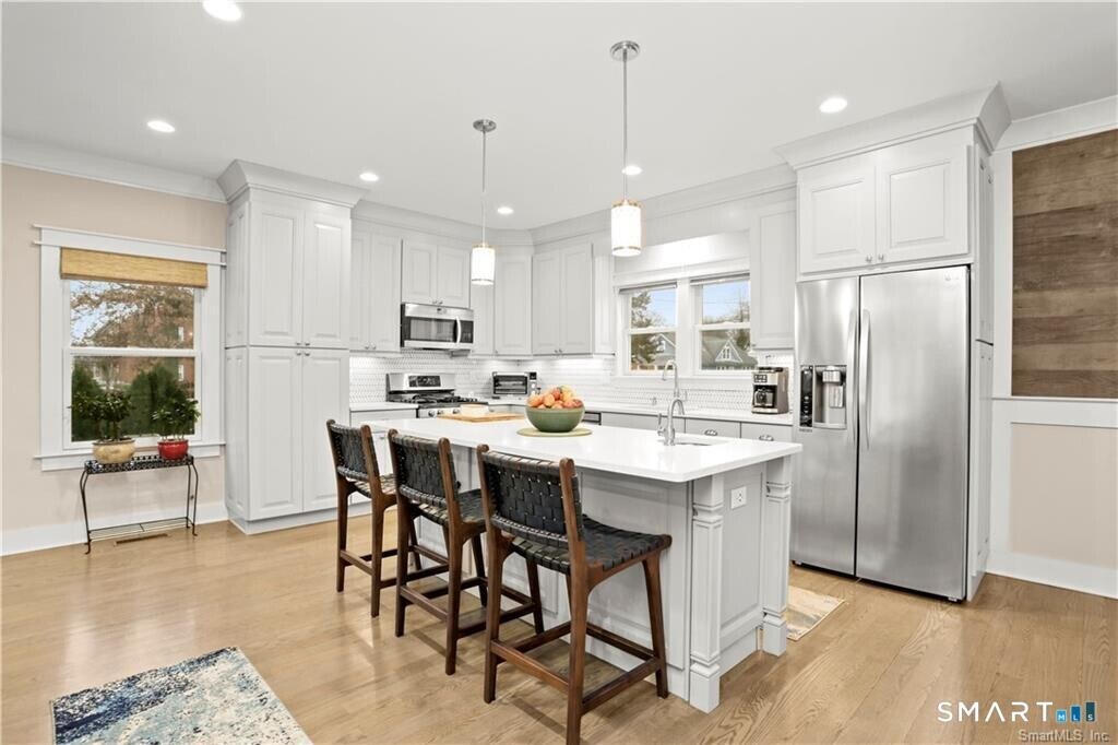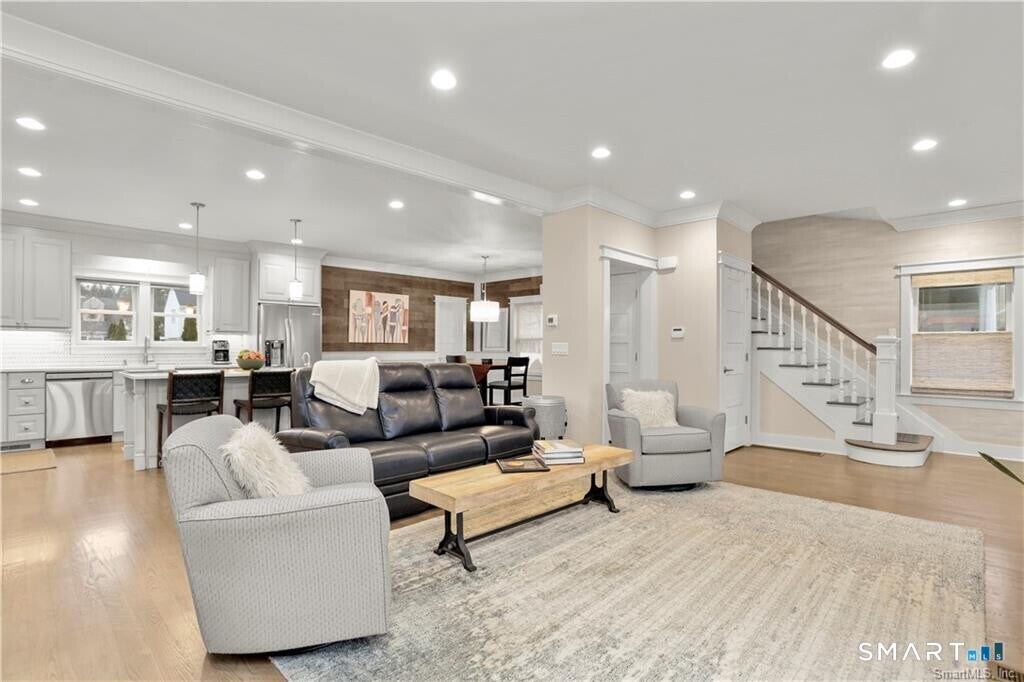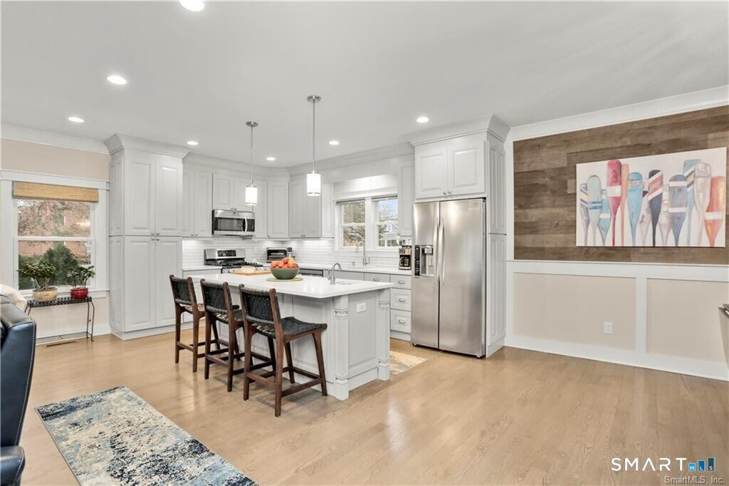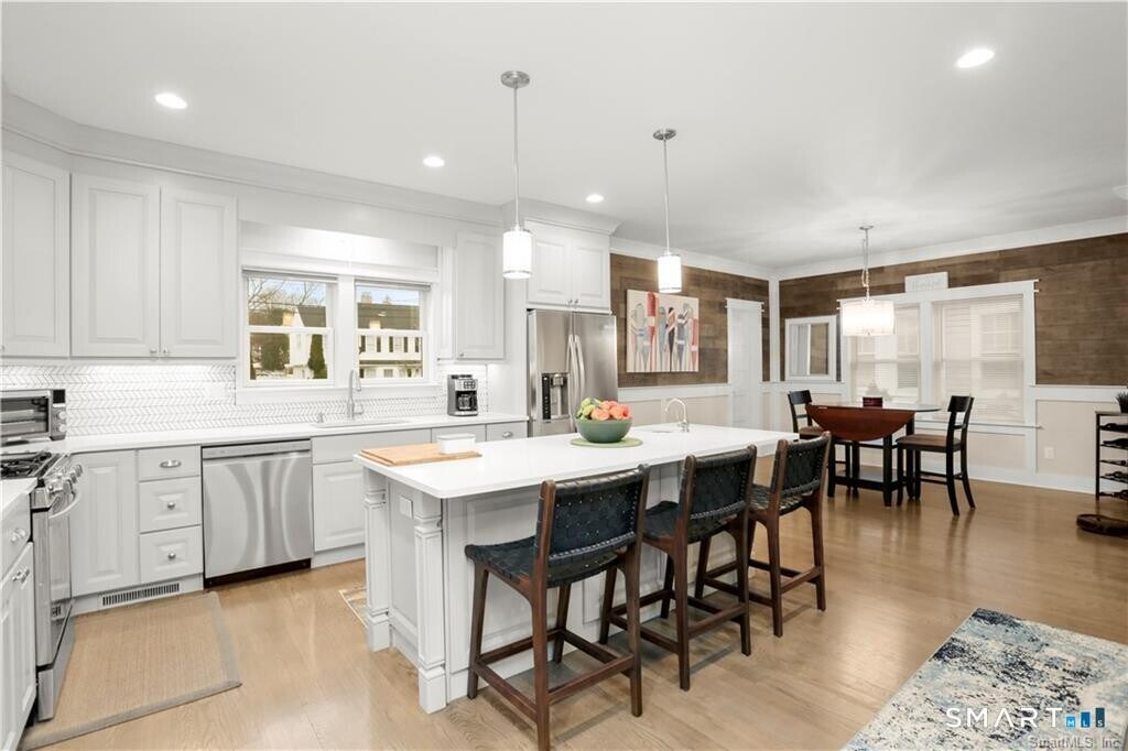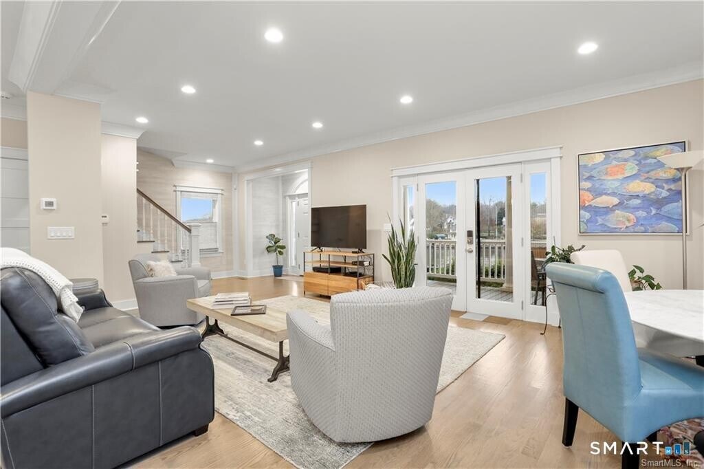 Call for Availability - Stunning direct waterfront rental perched on a bluff overlooking Holly Pond on the Darien/Stamford line. Completely renovated in 2018, this home offers a seamless open floor plan designed to maximize both comfort and breathtaking water views. The spacious living room features French doors that open to a covered porch, creating a perfect indoor-outdoor flow-all with sweeping waterfront vistas. The beautifully updated kitchen boasts a center island, quartz countertops, modern backsplash, and top-of-the-line stainless steel appliances. It opens to a generous dining area, ideal for both everyday living and entertaining, along with a convenient powder room. Upstairs, the primary suite occupies a private level and includes a renovated bath. Three additional bedrooms offer ample closet space, a Murphy bed, and a shared hall bath with tub/shower. A dedicated laundry area adds everyday convenience. Outside, the covered porch leads down to an expansive flagstone patio with masonry walls and a firepit-perfect for year-round enjoyment of the serene waterfront setting. A private driveway at the rear enhances both access and privacy. Move right in and experience the best of coastal living. MLS# 24167439