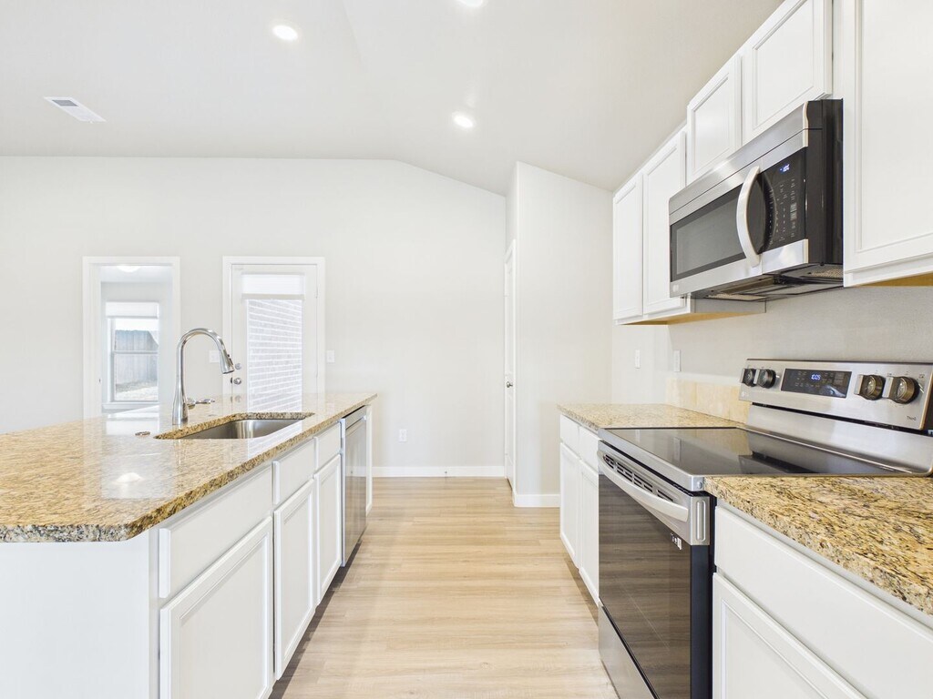 Welcome to the Meadows neighborhood! This 3 bedroom 2 bath home features a modern, open-concept layout perfect for comfortable living and entertaining! The kitchen is a chef's dream with sleek granite countertops, dishwasher, range, and microwave. Enjoy spacious bedrooms, updated baths, and plenty of natural light. Outside, you'll find a very large corner lot with fenced yard ! This home combines style, comfort, and convenience in one perfect package. Additional monthly fee of $15 applies for quarterly maintenance service package.