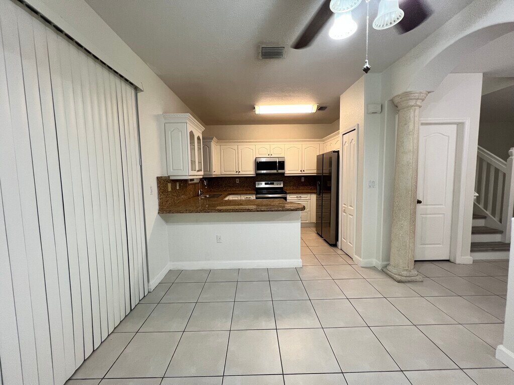 Remodeled and Spacious townhome move in ready with 3 bedroom, 2 full bathrooms upstairs, and 1/2 bath on first floor in Shoma Homes Villas I community. Amenities included: central air, central heat, Brand new appliances include: dishwasher, stainless steel stove, refrigerator and microwave. Updated kitchen, updated bathroom, New extra large washer and dryer. New luxury vinyl flooring on second floor and stairs. Covered patio with outdoor kitchen for relaxation or entertaining. No Utilities included. Is pet friendly. Small dog (20 lbs) or cat allowed. Date Available: March 1st 2026. $2,800/month rent. $2,800 security deposit required. Designated two parking spots and visitor spots available. Association requires police report and background check. Police report cost $25.00 per person, and background check $150.00 per adult, if married $150.00. Please submit the form on this page to learn more or text. Minimum credit required per association of 680. No section 8. No Realtors.