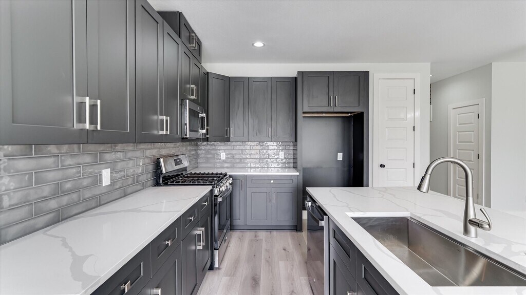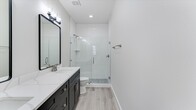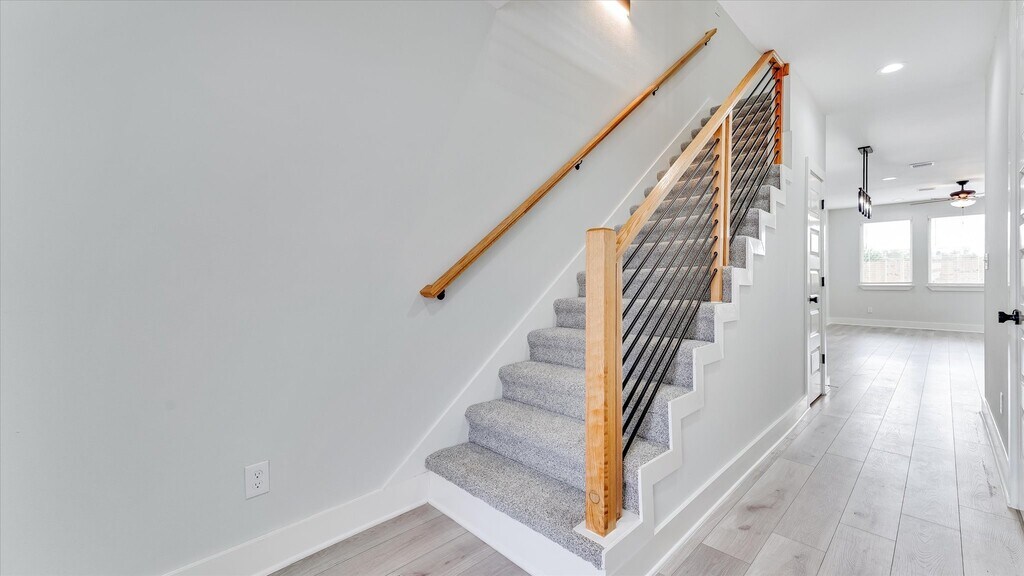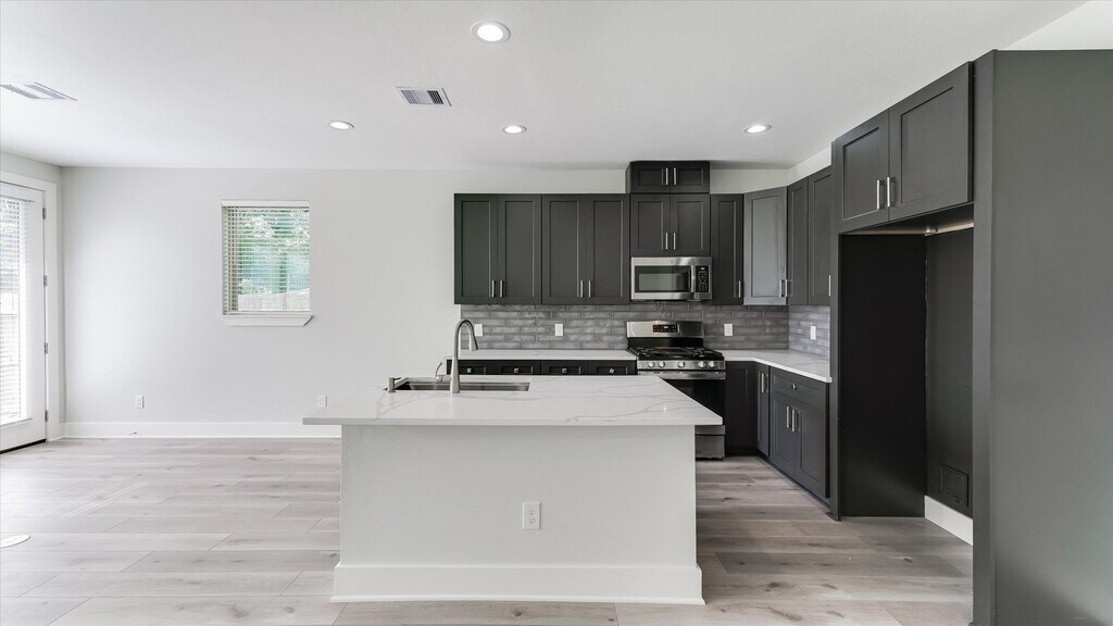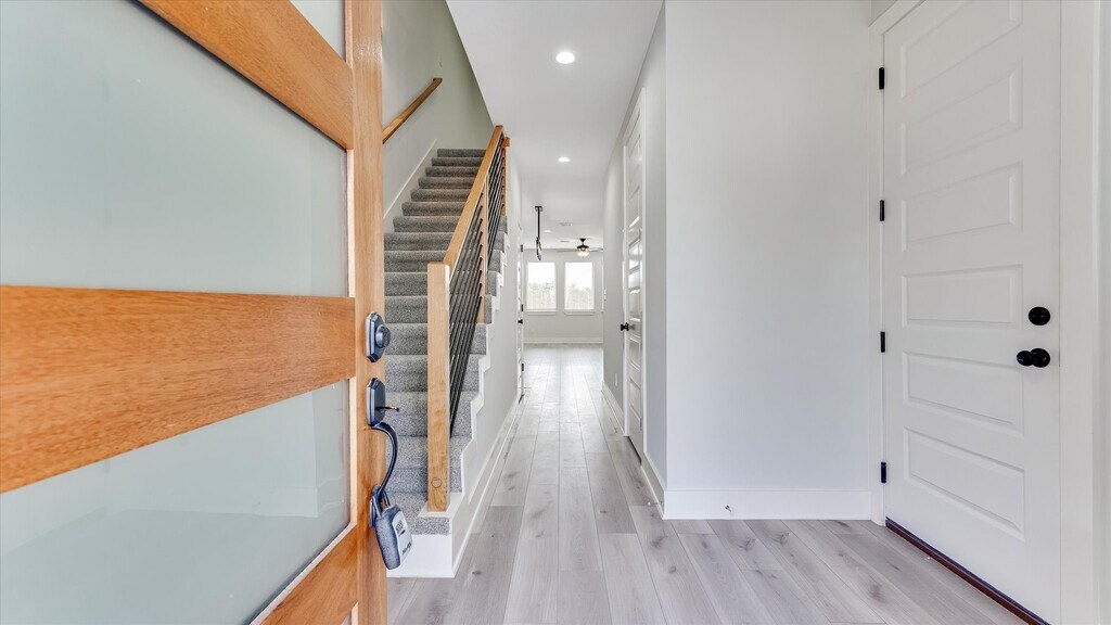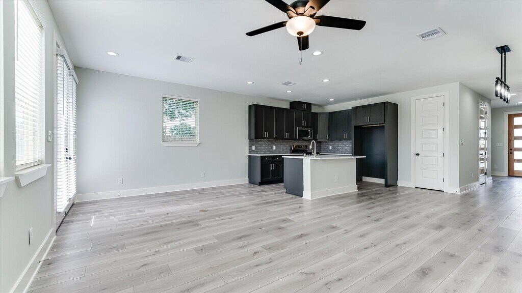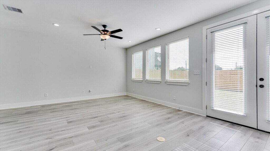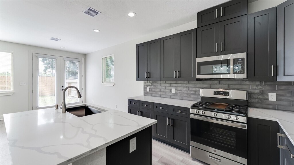 ACRES HOMES NEW BUILD! This stylish home offers 3 spacious bedrooms and 2.5 baths. The open-concept design connects the entertainment,kitchen,and dining areas. The kitchen features quartz counters,a large island with an chef’s sink,stainless appliances,soft-closing cabinets,a pantry,and a tile backsplash. Modern lighting in the dining area is inviting. A guest ½ bath adds convenience. The home has no back neighbors,tons of light,and French doors leading to the fenced backyard and porch. Enjoy the gas outlet on the back porch. Two-inch window blinds throughout. The primary bedroom,with two large walk-in closets,has an ensuite bathroom with 2 sinks,tile shower,and a skylight feature. The secondary bedrooms are generously sized and share a full bathroom with a tiled tub/shower. The home is pre-wired with cable and Cat 5 and includes a Wi-Fi-enabled thermostat and garage door opener. The wide driveway and garage provide ample parking and storage and is wired for EV charging. MLS# 18590357