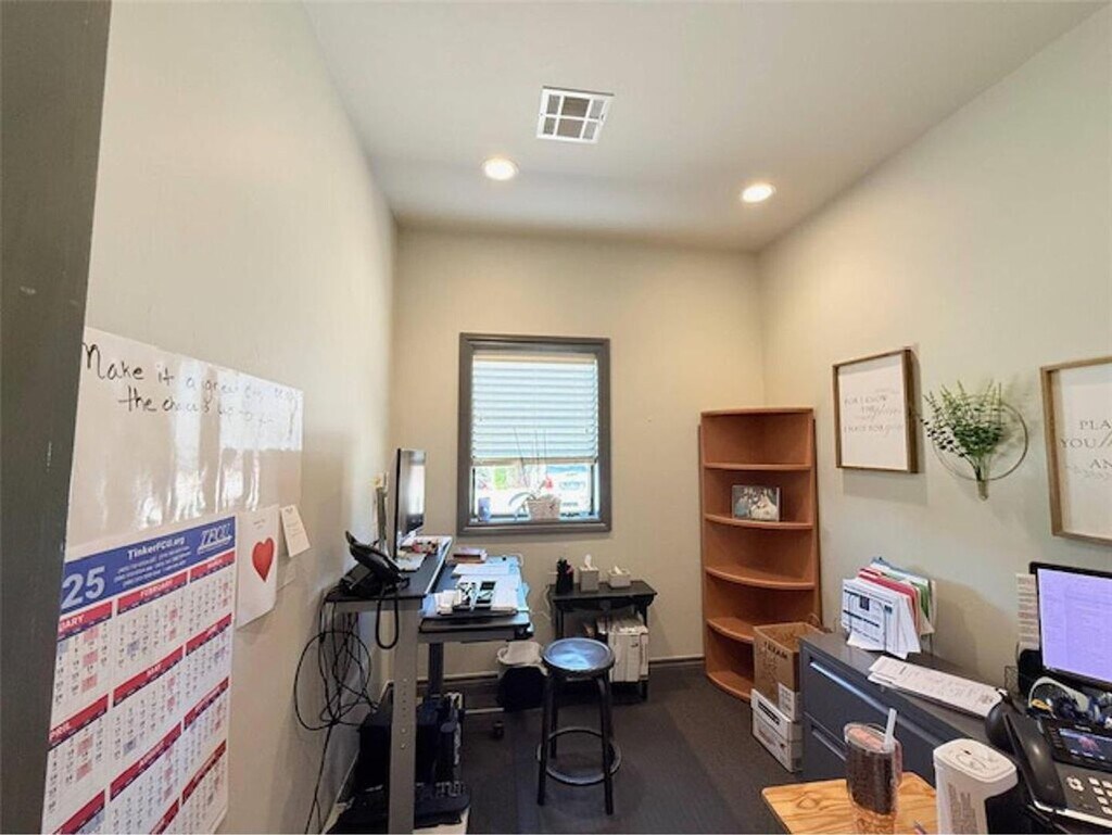 Unique opportunity to rent out an office space that faces 122ND. Location is key with plenty of parking for clients. Features include 9 individual offices downstairs all of which are large enough to fit multiple people in each room, waiting area, receptionist area, conference room, and kitchenette. There are 2 large bathrooms and plenty of storage cabinets that line the main hallway. The upstairs features another waiting area or lounging area plus 2 additional office spaces. The updates include granite on all counters, distressed wood flooring, nice carpet and recessed lighting throughout the space. There are 2 different parking lots as well as front and back access to the building. Tenant is responsible for paying all utilities and internet.