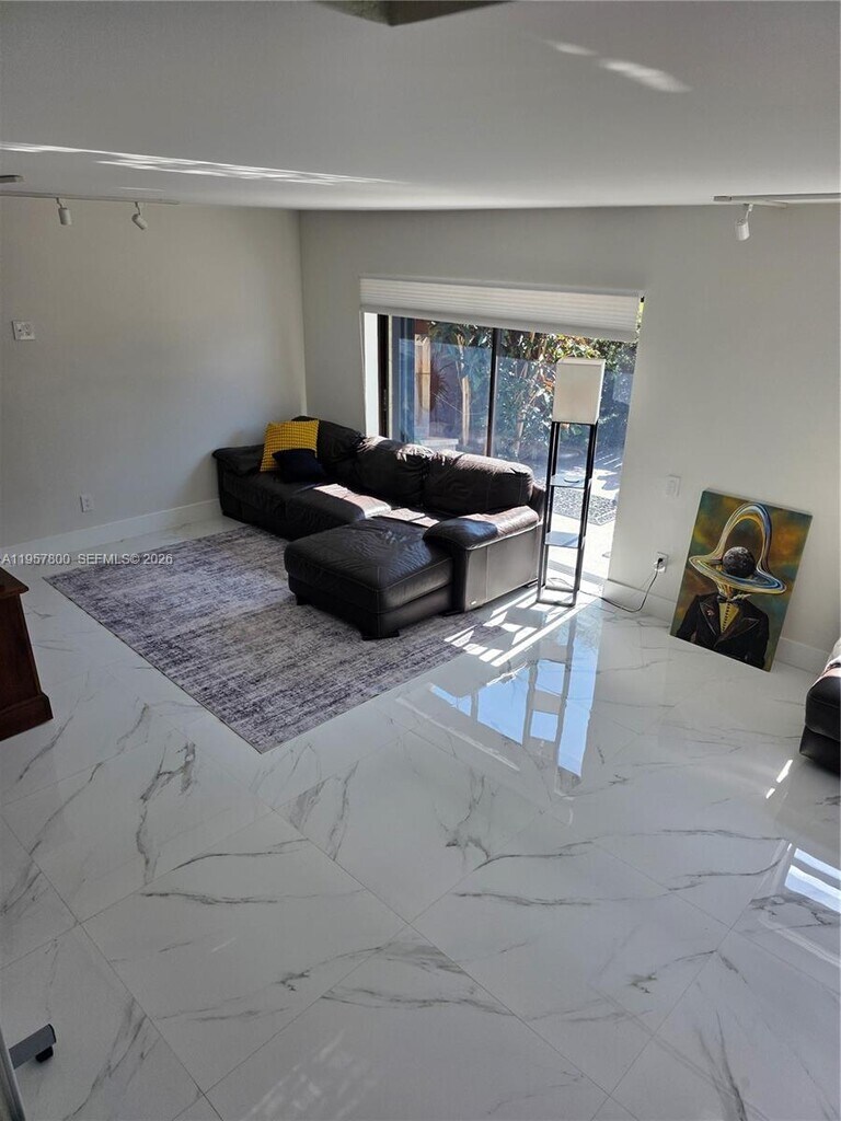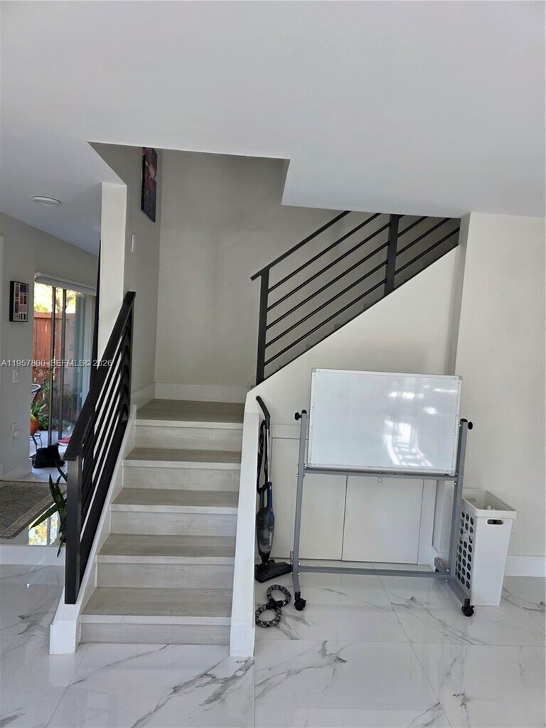 SNAPPER VILLAGE AT ITS FINEST — No expense spared , This beautifully updated corner unit is located in a desirable 24/7 guard-gated community and offers 3 bedrooms and 2.5 bathrooms, ideal for comfortable living and entertaining. lots of natural light throughout the unit, very spacious bedrooms upstairs with 2 full baths, plus 1/2 bath downstairs. no pets allowed in this unit, extra storage below staircase, modern staircase leading to upstairs bedroom, paddle fans with remote controls, (2) wifi Boosters, ECO B a/c thermostat The home features top-of-the-line upgrades throughout, including elegant porcelain flooring, a fully renovated kitchen with stylish cabinetry, quartz countertops, and newer stainless steel appliances, and a top-of-the-line full-size washer and dryer inside the unit. The primary bedroom includes custom cabinetry. included in rent: water service, cable and internet, All bathrooms have been completely remodeled with porcelain tile, glass shower doors, and modern vanities. Enjoy enhanced privacy with a corner patio backing to a greenbelt, only one neighboring unit, Additional highlights include one assigned parking space plus ample guest parking (up to three more vehicles allowed). The community offers resort-style amenities, including a tennis court, swimming pool, exercise room, and 24-hour security patrol. children play area, Conveniently located near the Turnpike, Palmetto Expressway, FIU, Miami Dade College, restaurants, shopping malls, and more. MLS # A11957800
