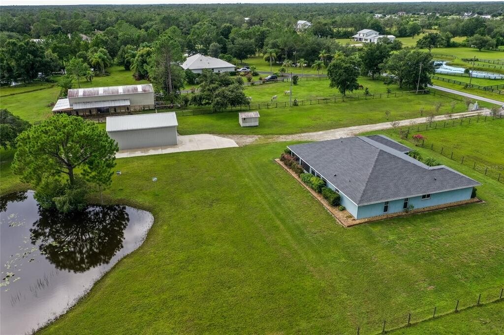 Fully Furnished or unfurnished 3-Bedroom Country Estate for Rent annually or short term (minimum 3 months). The property has approximately five (5) acres in total,however,renters can opt to rent the home and the approximate 1 acre surrounding the home or all five acres. This home has Lake Views,Modern Comfort; Versatile Outbuildings. This beautifully maintained 3-bedroom,2and ½ -bath country estate is offered that can provide an opportunity to enjoy spacious,comfortable living in a peaceful,gated setting. Located on a corner lot with mature landscaping and scenic lake views,this home combines luxury,convenience,and privacy. The interior features a bright open floor plan with expansive windows throughout. The generous living room includes a custom wet bar and pool table —perfect for entertaining—while the chef-style kitchen showcases custom glass-front cabinetry,oversized food prep counters,and ample storage. Enjoy lake views from the family room,which opens directly onto a screened rear porch,creating ideal indoor-outdoor flow. The screened front porch adds another space to relax or entertain. The primary suite includes a walk-in closet and an en-suite bath. Two additional bedrooms and a second full bath provide flexibility for guests,a home office,or extended stays. A spacious indoor laundry room with pantry storage and a separate water closet adds to the home practical layout. Additional features include an attached 2-car garage,a stable and a 30x39; x 30x40; barn with concrete floors,overhead doors,electricity,water,and a concrete pad for RV parking. There is secure automatic gate entry. The property is on a fully fenced corner lot. This property is perfect for horses,cows,or other animals,making it a perfect option for those looking to embrace a rural lifestyle with space for their animals. Whether you're relocating,downsizing,or simply looking for a peaceful retreat,this home offers the ideal blend of comfort,privacy,and flexibility. Again,it is available for short- or long-term leasing and can be rented either furnished or unfurnished. Tenants will have to pay a broker fee of $75.00. MLS# A4658698