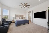 Refrigerator and W/D included! Beautifully maintained home in the amenity-rich Sweetwater community spanning almost 2500 square feet of living space with 4 bedrooms, 3 full bathrooms, flex/bonus room and an amazing screened in back porch. Walking distance to one of two resort-style pools. Step inside to this light and bright home to easy to maintain wood-look tile flooring, designer lighting and fans, modern railings and custom designed pantry. The lower level showcases the primary bedroom with an oversized shower and large walk-in closet, two secondary bedrooms, full bathroom and spacious laundry room with plenty of storage. Upstairs is a flex/game room space, 4th bedroom and full bathroom. With no neighbors behind, enjoy the views from the screened in porch highlighted with tiled flooring. The backyard is home to numerous fruit trees! The Sweetwater community features two resort style pools, a neighborhood only gym, pickleball, basketball and sand volleyball courts, a putting green, dog park and miles of hiking and biking trails. Located in acclaimed Lake Travis ISD. Close to multiple golf courses, shopping and dining with an easy drive to downtown Austin and the airport. Minutes from the lake!