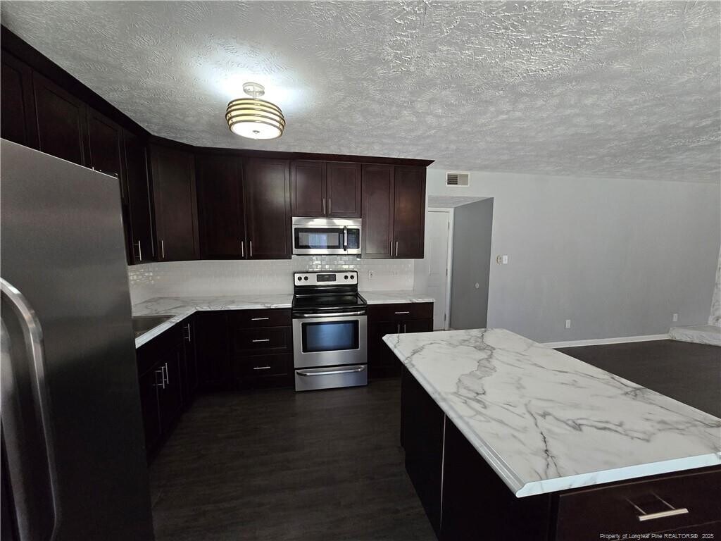 This home is absolutely breathtaking featuring dark hardwood floors throughout the living and kitchen area. The kitchen is amazing with beautiful cabinets, tile back-splash stainless steel appliance, island and tons of counter space. Upon entering the living room you will find a gorgeous white stone fireplace, large windows that let the natural light in from the back and very open floor plan cascading into the kitchen living room and dining area. The 3 bedrooms are very spacious and have closet space that will meet all of your needs. In the back yard you will be pleased I'm sure with the fenced in yard deck and patio. Call today for your showing this one is going to move quickly! Pets upon approval with nonrefundable pet fee!