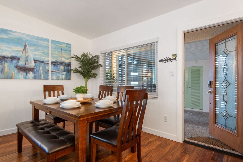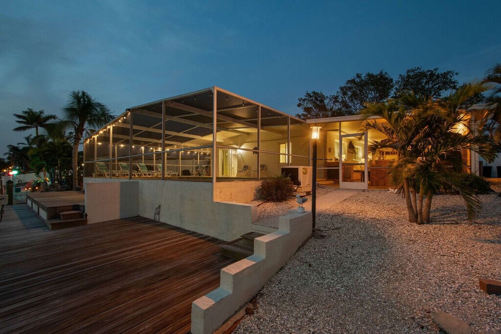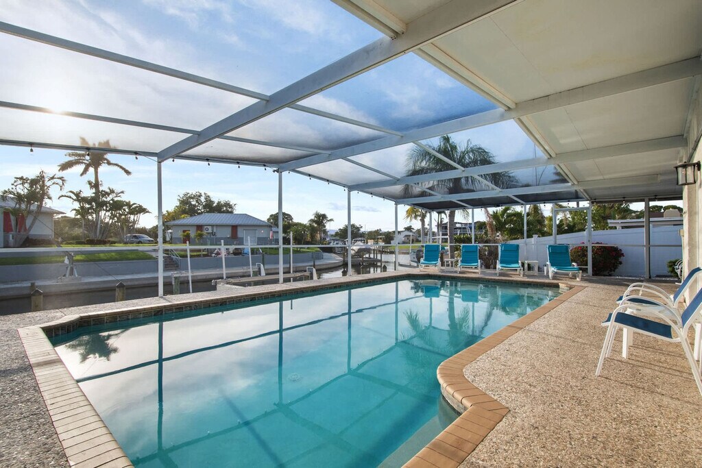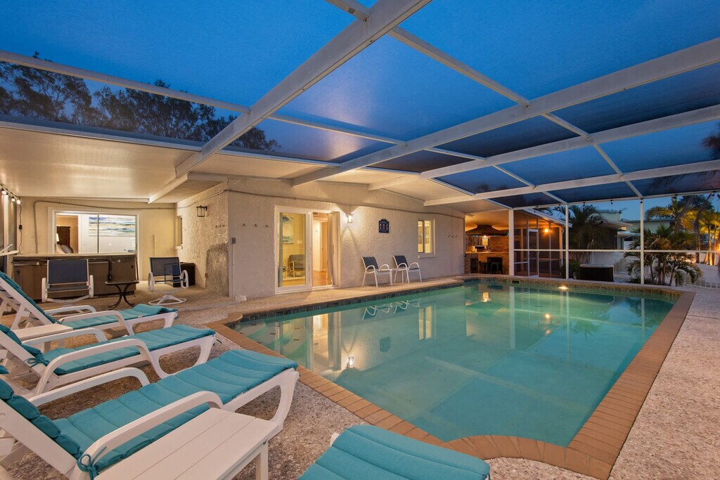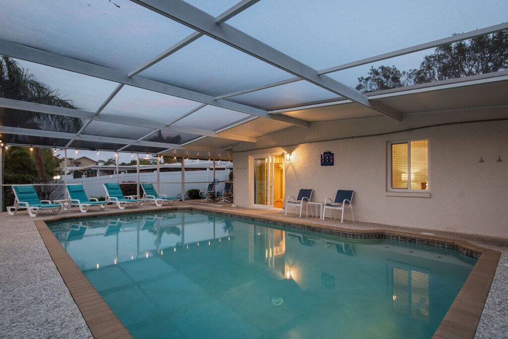Gather your loved ones and feel at home in Bayshore Surprise, an exquisitely remodeled ground-floor home epitomizing coastal Florida living. This retreat offers three beautifully designed bedrooms and two modern bathrooms. This home offers high-end finishes and top-tier amenities, including a large screened-in pool with a spacious deck, relaxing outdoor lounging, and a cozy living area with a TV. The fully equipped kitchen boasts stainless steel appliances. There is also an outdoor BBQ area with a built-in gas fireplace, side and power burners, a sink and a full-size refrigerator. Pool heat is available for $35 per night. Bayshore Surprise is ideally located six miles south of downtown Bradenton in a quiet and scenic neighborhood just 100 yards from Sarasota Bay, a paradise for fishing enthusiasts. It is located next to the Bayshore Gardens Park and Recreation District, which has picnic tables, sports facilities, a playground, and bay access. Other nearby attractions include the De Soto Heritage Festival, the Riverwalk (Downtown Bradenton), a 1.5-mile scenic path along the Manatee River, a public boat dock, an amphitheater and a family-fun zone with a splash pad. Sarasota-Bradenton International Airport is just 4.5 miles away. Quiet hours are from 10:00 PM to 8:00 AM. Guests must be 21 or older to book; guests under 21 must be accompanied by a parent or guardian. Absolutely no prom, graduation, or other large parties or events are permitted. The maximum number of house guests must equal the maximum number of sleeping accommodations, which allows for eight guests. All guests are required to sign the Rental Agreement and fill out a Check-In Form prior to arrival. A noise detector has been installed in the house to notify you if the sound has reached a level that could disturb the neighbors; noise must be kept below 65 db during quiet hours. The boat lift, kayaks and hot tub are not included in the rental. A maximum of one boat is allowed. [SI]