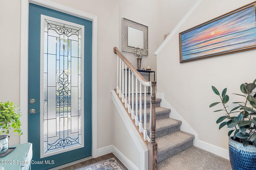 Eugene CrockettThis beautiful home in the Arrivas community, built in 2019, is right in the heart of Viera and available for rent for the first time in December. Home has a desirable sunset/west-facing location and is across from The Avenues Viera, Trader Joe's, Duran Golf Course, and Urban Prime/Food Truck Park. The home is immaculate, bright, and sunny, with a first-floor master suite that opens to the courtyard through French doors. Two bedrooms (one with a porch), two bathrooms, and a laundry room are on the second level. Home has many upgrades, including 10 ft ceilings, a gas stove, hurricane glass etched glass front door, epoxy garage floor, tile/carpet and so much more. Arrivas is a maintenance-free HOA community (owner pays) where all landscaping and exterior features are maintained. High-speed ATT Fiber and very low utility bills (renter pays). The street is quiet with minimal car traffic and has a scenic lake/sunset view every day. See rocket launches right down the street or from the second-story porch. Two-car garage. Take your golf cart everywhere! Great neighborhood with excellent schools, recreation, and a community pool. No pets/no smoking. Enjoy access to the Arrivas Village community pool as well.