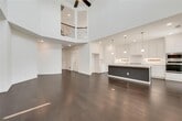 Immaculate east-facing home in the prestigious Edgestone community, Frisco ISD. This highly sought-after floor plan features 2 bedrooms and a private office downstairs, with 2 additional bedrooms, media, and game room upstairs. Elegant finishes throughout include soaring ceilings, hardwood floors, plantation shutters, and an open-concept living area filled with natural light. The chef’s kitchen is designed with quartz countertops, stainless steel appliances, gas cooktop, large island, farmhouse sink, and walk-in pantry. The luxurious primary suite offers dual vanities, marble countertops, garden tub, separate shower, and his-and-her closets. A spacious guest suite with ensuite bath is also located on the main level. This home is further enhanced with premium upgrades rarely available in rental homes: a whole-house water filtration system, water softener, tankless water heater, epoxy-coated garage floor, and an EV charging station. Outdoor living is complete with a covered patio and private backyard. Community amenities include pools, fitness center, playgrounds, and walking trails. Conveniently located near shopping, dining, parks, and major highways. This beautifully maintained home is offered for lease for the first time. The owner is seeking tenants who will value and care for the property with pride.