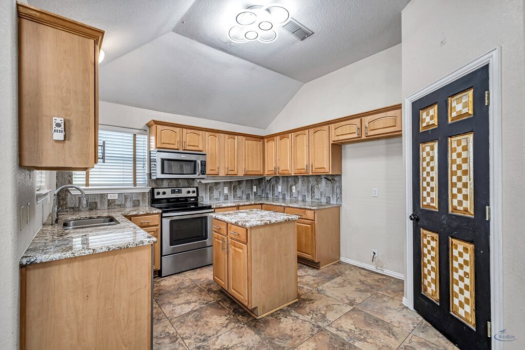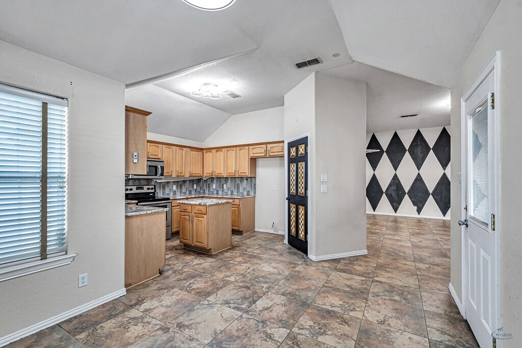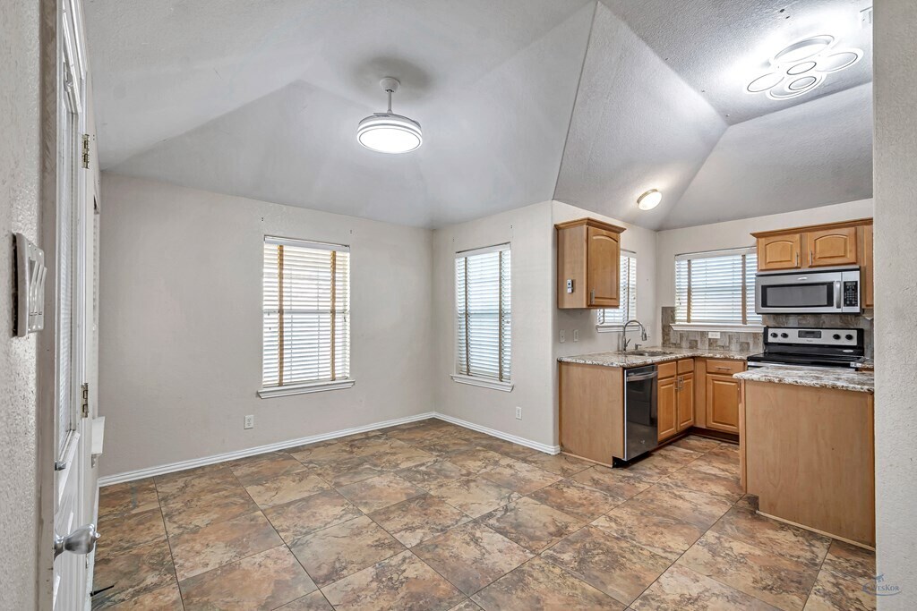 This 4-bedroom, 2-bath home is located in a highly desirable area and features beautiful decorative touches throughout. The spacious primary bedroom offers his-and-her closets. The kitchen is upgraded with granite countertops, and the home includes tile flooring throughout—no carpet. The house comes with a laundry dryer for added convenience. Enjoy the fully fenced backyard with a wooden privacy fence, metal rolling back gate with alley access, a large parking pad, and a covered patio.