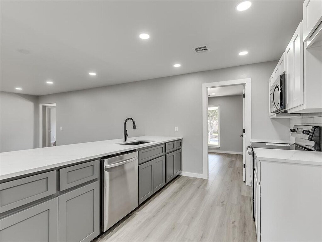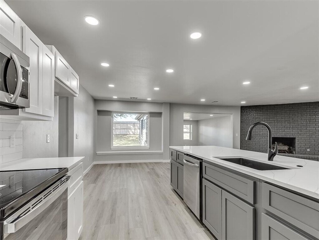 COME CHECK OUT THIS STUNNING REMODEL! This home has been COMPLETELY REDONE and with great design! fresh modern paint on the inside/outside of the home. You will love the flex space that greets you as you enter the home, it can be a formal dining, office, or 2nd living, and you will love the designer accent wall. The open living/kitchen space is amazing, with its large corner curved fireplace, huge quartz island, additional dining space plus a 2nd flex space that might make a great playroom. The home has custom built, all wood cabinets throughout. The black granite farmhouse sink is sure to catch your eye and look at the incredible pantry/coffee bar, so much added storage and counter space. The home has a mother-in-law plan, the MIL suite is off of the kitchen, with a beautiful full bathroom with black tiled shower and a large bedroom and a mud wall off of the garage entry. On the other side of the home is 3 additional bedrooms with a Jack and Jill style bathroom and a spacious primary bedroom with its own personal touches, large bathroom and 2 closets. All 4 bedrooms with attached bathroom. This home has a newer HVAC and newer widows. The neighborhood has walking trails, park and large pond plus a pool with lifeguard! Cul-de-sac lot and just the best neighbors. Window coverings have been added since these photos were taken. You won't want to miss this BEAUTIFUL HOME.