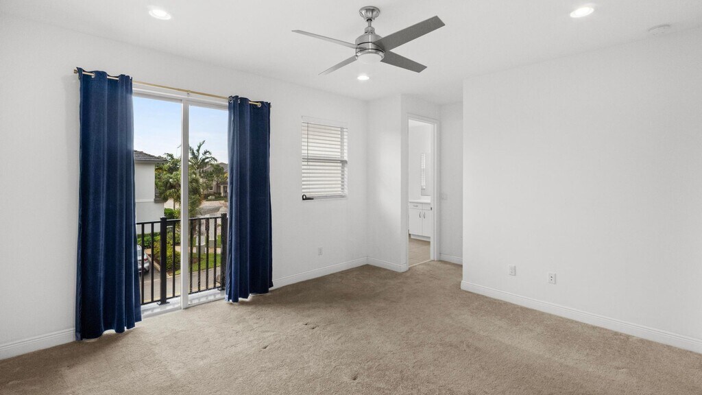 COURTESY OF Millennium Real Estate Invest Modern and luxurious three-bedroom, three-bath townhouse offering 1,784 square feet of living space in a gated community. This well-designed home features a full bedroom and bathroom on the first floor, tile flooring throughout the main level, impact windows and doors, and a stylish kitchen with quartz countertops, upgraded cabinetry, and stainless steel appliances. Designer plumbing fixtures add a refined touch throughout the home. Upstairs, two spacious primary suites each include private en-suite bathrooms, with one featuring a balcony. Enjoy a covered porch and a private fenced backyard ideal for relaxing or entertaining. Conveniently located near schools, shopping, dining, and major roadways, with the beach just a short drive away, offering both comfort and accessibility.