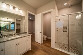 Nestled on a premium lot with no back neighbors and peaceful lake views,this exceptional 1.5-story residence blends luxury,privacy,and thoughtful design throughout. The home offers 4 bedrooms downstairs with an optional 5th bedroom upstairs,4.5 baths,a 3-car tandem garage,private home office,and an upstairs game room and media room with wet bar. A welcoming courtyard leads to an open-concept floor plan filled with natural light and stunning water views. The great room features a vaulted,beam-accented ceiling,cozy fireplace,and sliding glass doors opening to a spacious covered patio for seamless indoor-outdoor living. The chef’s kitchen impresses with double ovens,5-burner gas cooktop,an 11-foot island,and extended cabinetry that flows into the breakfast area. The primary suite offers a bay window overlooking the lake,spa-inspired bath with freestanding tub,rainfall shower,and an oversized walk-in closet. MLS# 90394737