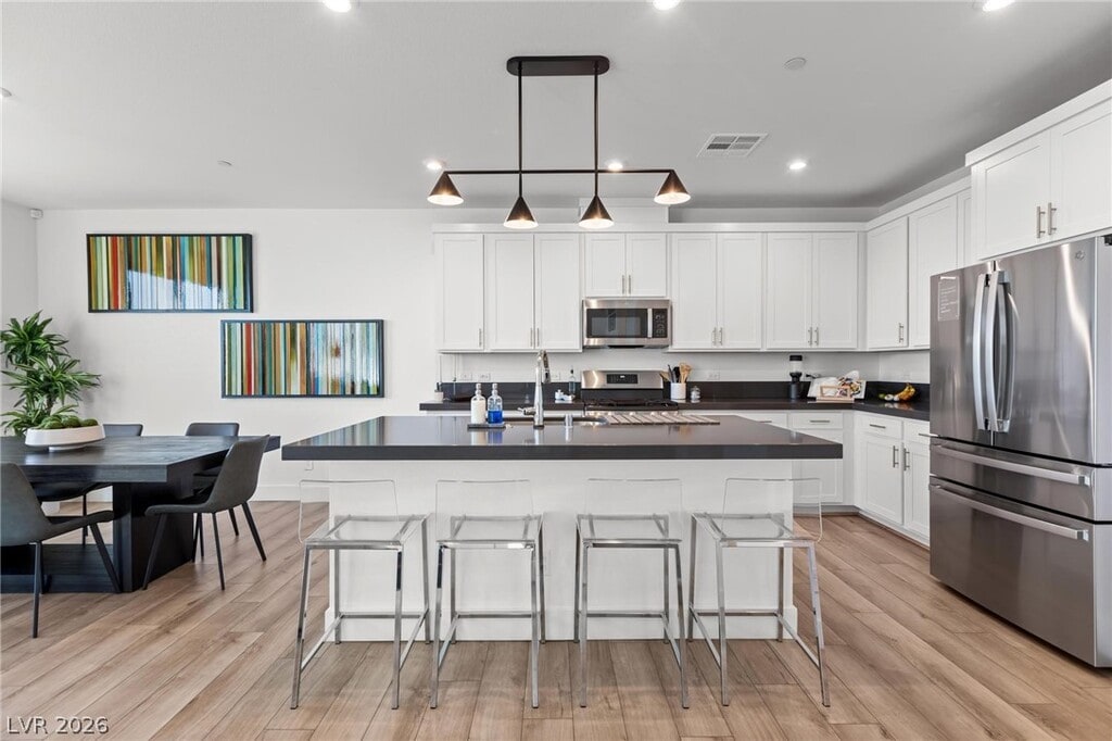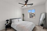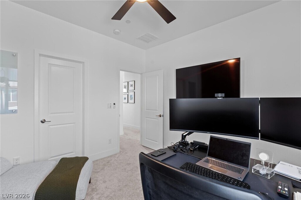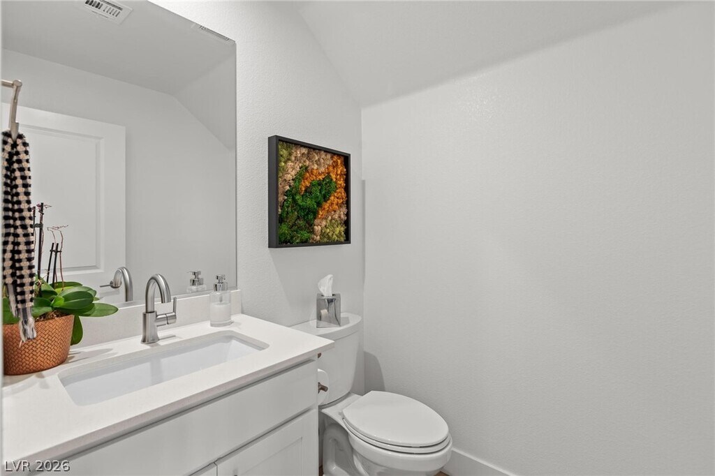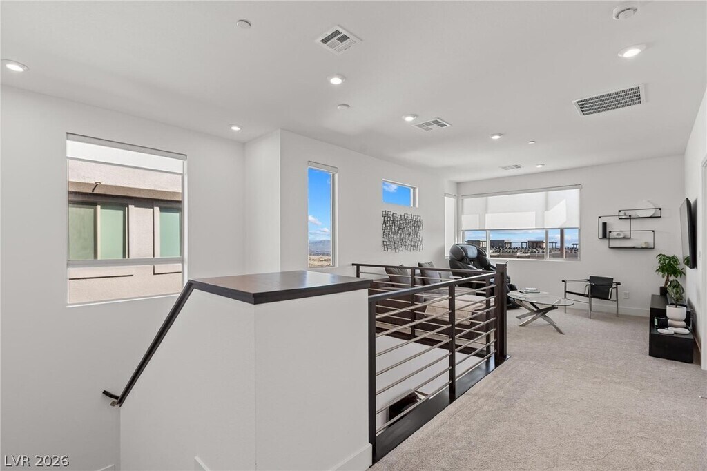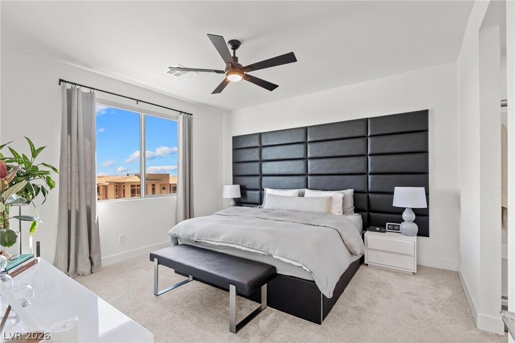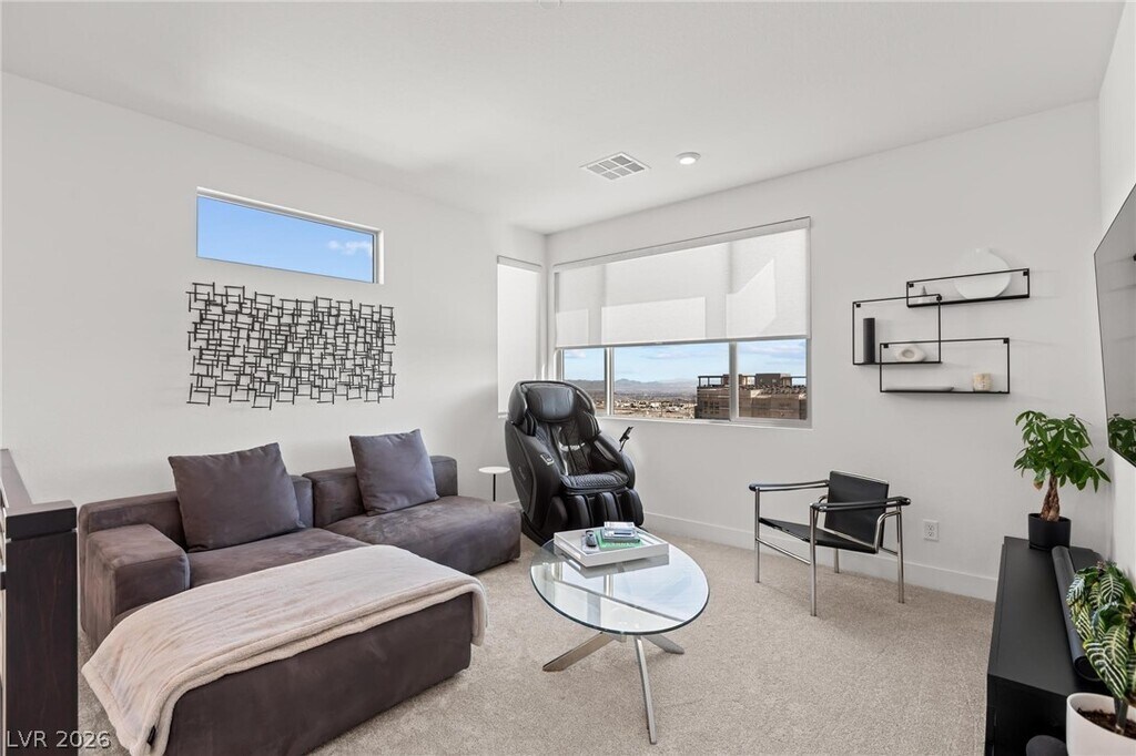 Built in 2024 and located in the highly sought-after Vertex community of Summerlin, this beautiful two-story, 3-bedroom home offers a modern, functional layout with stylish finishes throughout. The open-concept living area overlooks a professionally landscaped, low-maintenance backyard with pavers and turf, and flows seamlessly into a contemporary kitchen featuring an oversized island, stainless steel appliances, built-in microwave, and white cabinetry. Upstairs, enjoy stunning Las Vegas Strip views, a spacious loft perfect for additional living or entertaining space, and a relaxing primary suite with an en suite bath and oversized shower. Just minutes from premier shopping, dining, and entertainment, this nearly brand-new home is a must-see.