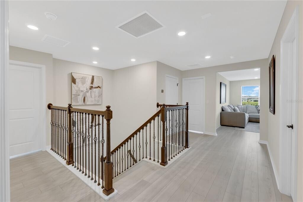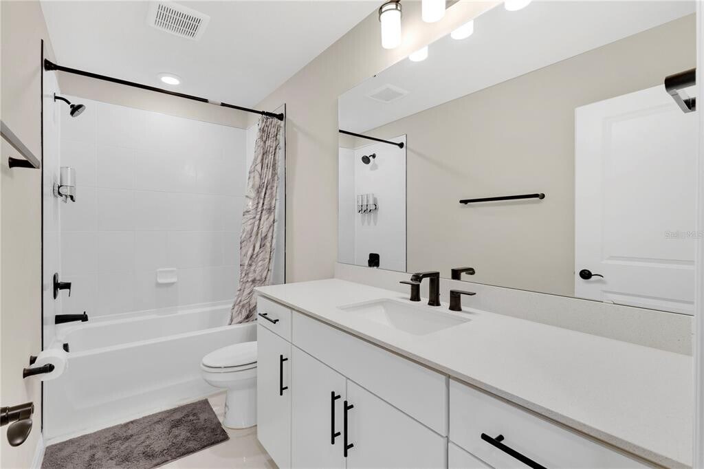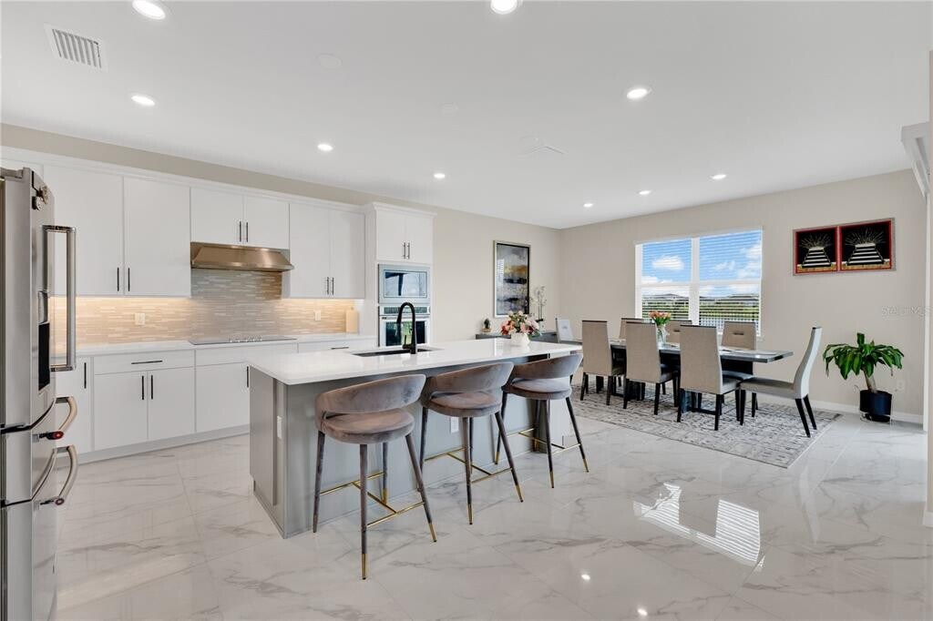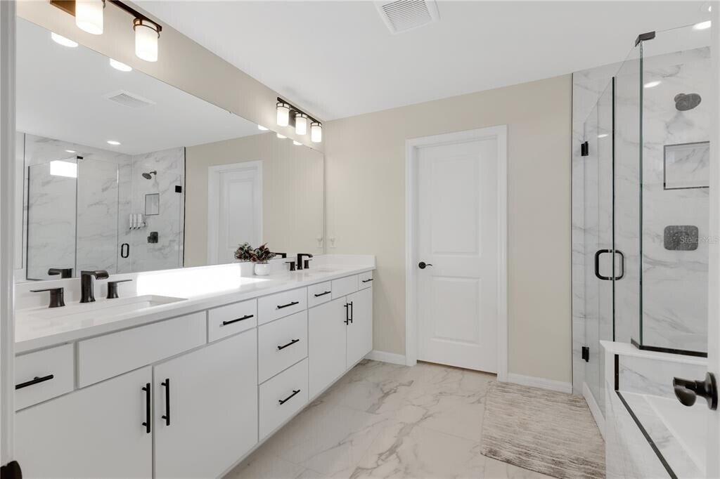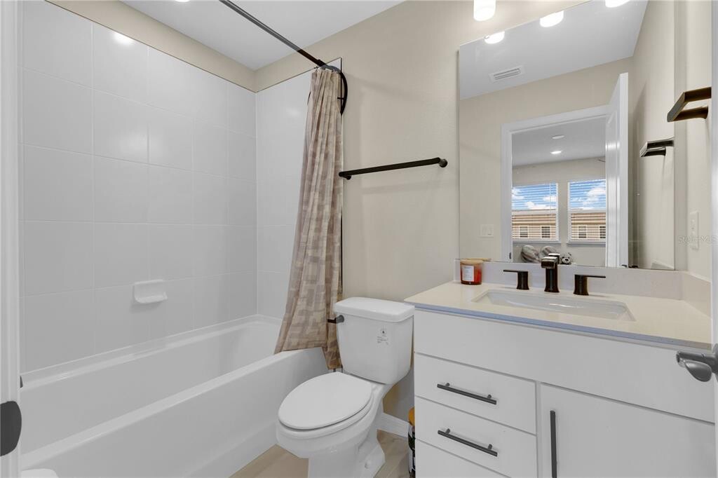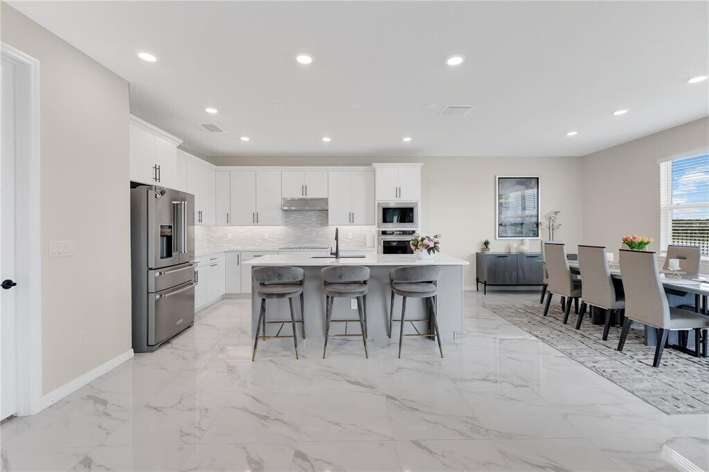 One or more photo(s) has been virtually staged. Contemporary residence located in the master-planned community of EverBe in Orlando. The first floor features open living areas with large-format porcelain tile and a modern kitchen equipped with KitchenAid appliances,a quartz island,and generous storage. The main living space includes a stone accent wall with an electric fireplace,along with two flexible office spaces on this level. On the second floor,all bedrooms include custom built-in closet organizers and new laminate flooring. The primary suite includes a glass-enclosed shower,dual vanities,and a walk-in closet,and an additional loft provides extra living space. The home is located on a lake-view lot with a large backyard,and the garage features an epoxy floor finish with interior parking for two vehicles plus driveway space. Washer and dryer are included. Residents of EverBe have access to resort-style amenities including a beach-entry pool,fitness center,sports courts,walking trails,playgrounds,and a waterfront town center,with convenient proximity to Lake Nona,Orlando International Airport,major highways,shopping,and dining. MLS# S5137951