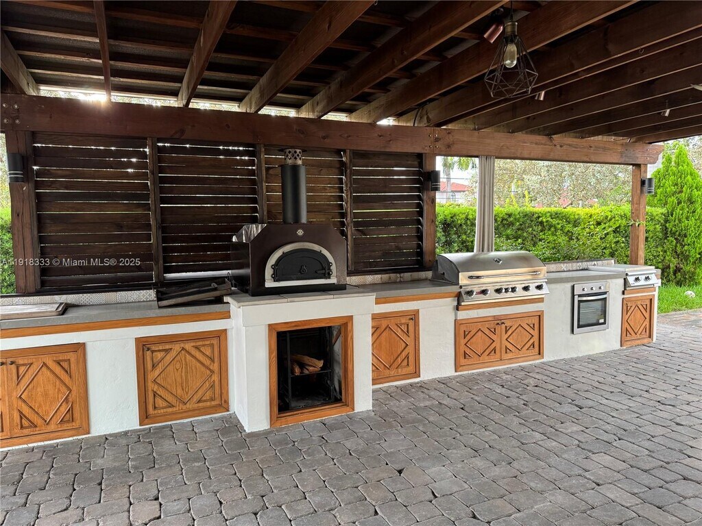 Sophisticated single-family home built in 2016. Features 6 bedrooms, 3 bathrooms, and spanning 2,858 square feet, this home offers ample space for comfortable living. The house is situated on a 0.42-acre lot and includes a three-car garage. The home boasts a spacious floor plan with formal living and dining rooms, a great room with vaulted ceilings, and a bright kitchen with high-end appliances. Step outside, and you'll find a relaxing oasis awaiting you. The property boast a refreshing swimming pool, and outdoor kitchen, ideal for hosting and enjoying the outdoor lifestyle. It also includes high-impact glass windows, a laundry room, and various custom interior features like built-in cabinetry and walk-in closets.