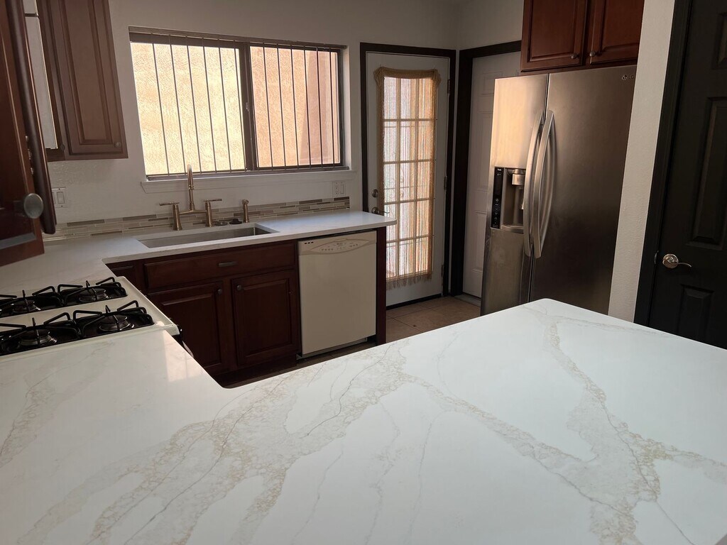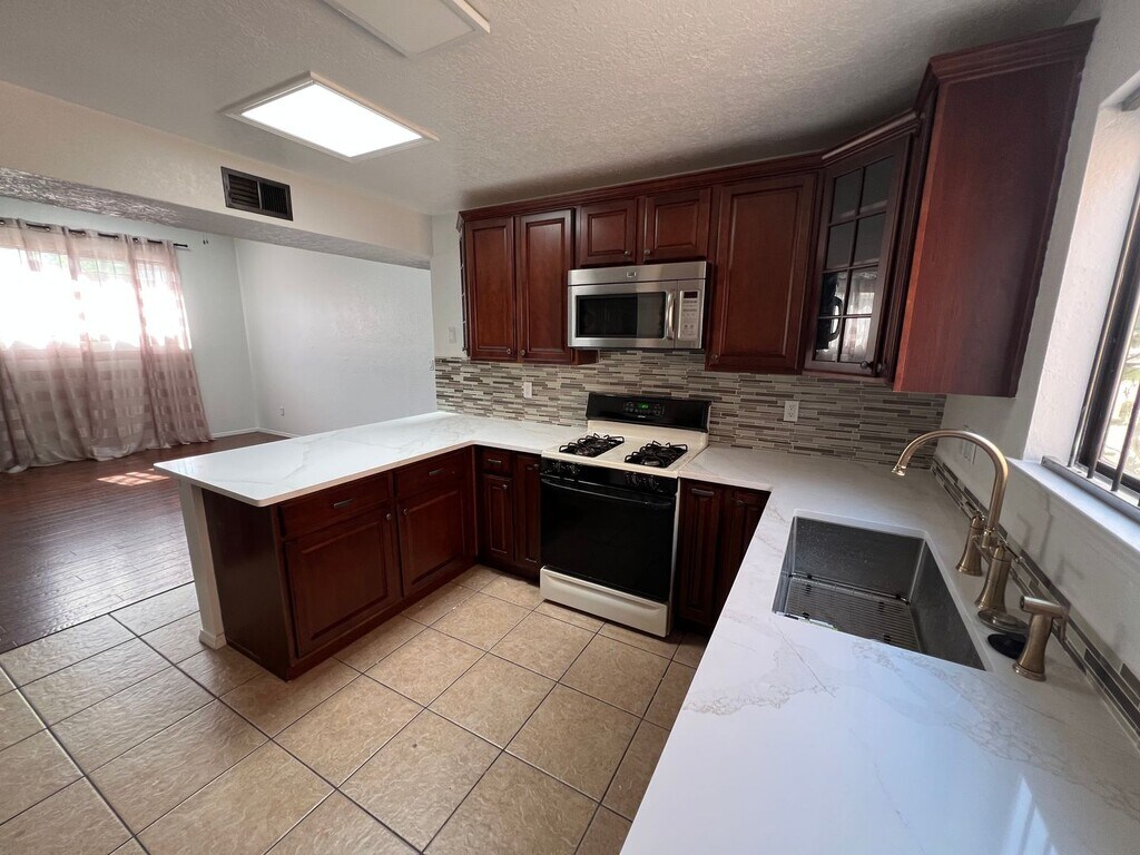 Well located west side Pueblo Style 1273/sf Townhouse! Open living with raised ceilings and fireplace, updated kitchen with loads of cabinets, breakfast bar, gas range, HVAC heating - cooling, three spacious bedrooms primary with full bath, laundry room and small rear yard perfect for grilling and chilling! Bike and pathways parks and shopping plus dining of every kind around the corner! No Smoking! Small dogs negotiable ! Currently under Renovation! Tenants pay all utilities plus renters insurance. School Districts Elementary: CHAPARRAL Middle: JOHN ADAMS High School: WEST MESA For application and showing info