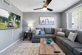 Comfortably furnished townhouse conveniently located close to Old Town Scottsdale in quiet community. Great two-story two-bedroom layout. Both bedrooms are upstairs. U-shaped kitchen with breakfast bar and eat-in area that opens to the covered patio. Contains everything needed (kitchen,bed,etc... essentials). Separate inside laundry room includes washer and dryer. Assigned covered parking. Community swimming pool with pool towels in-unit. Easy to use YouTube TV with all streaming apps. Walking distance to Valley Ho Hotel,Old Town Scottsdale,and Scottsdale Stadium. 5-minute Uber ride to The W Hotel. Great location for access to airport,TPC,ASU,and freeways to other surrounding metro areas. Weekly Rates Available