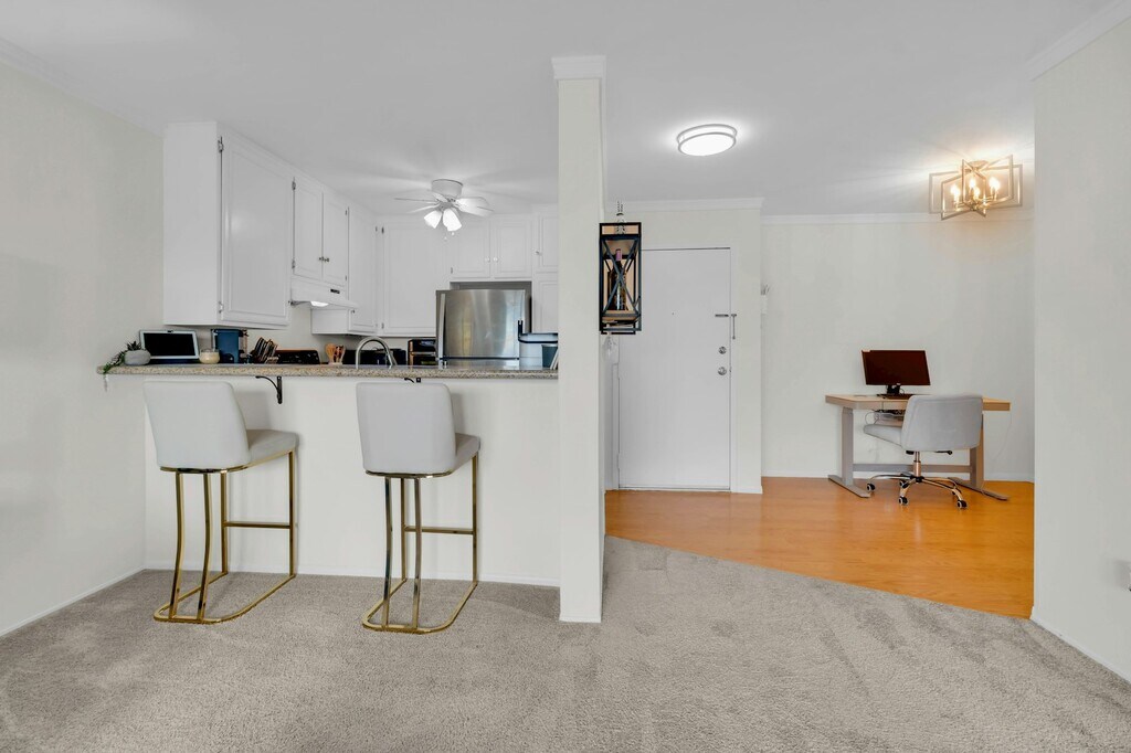 Welcome to Hyde Park Villas in San Carlos, one of San Diego’s most sought-after communities. This beautifully maintained 1-bedroom, 1-bath residence offers an open layout filled with natural light! The spacious living area extends to a private west-facing balcony, the perfect spot to unwind and take in the afternoon sunsets. The kitchen is ideal for both daily living and entertaining, featuring convenient bar-top seating. The oversized bedroom serves as a peaceful retreat with generous closet space and plenty of room to unwind. A flexible dining area offers the option for a dedicated dining room or home office to suit your lifestyle. Residents of Hyde Park Villas enjoy resort-style amenities including pools, a spa, sauna, clubhouse, BBQ areas, elevators, and gated access. San Carlos offers the best of both worlds...the conveniences of a major metropolitan area with the charm of a close-knit community. Enjoy local favorites including a neighborhood grocery and hardware store, cozy coffee shops, and popular restaurants, many within walking distance. With close proximity to SDSU, Grossmont College, Cowles Mountain, and easy freeway access, this home perfectly blends comfort, convenience, and community living. Contact us for an appointment this Sunday!