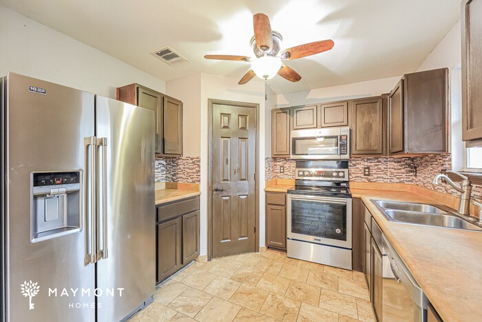 MOVE-IN READY This home is move-in ready. Schedule your tour now or start your application today. Maymont Homes is committed to clear and upfront pricing. In addition to the advertised rent, residents may have monthly fees, including a $10.95 utility management fee, a $25.00 wastewater fee for homes on septic systems, and an amenity fee for homes with smart home technology, valet trash, or other community amenities. This does not include utilities or optional fees, including but not limited to pet fees and renter’s insurance. Welcome to this inviting 4-bedroom, 2-bath home in San Antonio, TX, offering comfort and convenience in a prime location. The home features a tall arched entryway that creates a beautiful first impression, along with a spacious two-car garage for everyday ease. Inside, freshly painted walls create a bright and welcoming atmosphere throughout. The dining room and kitchen feature durable tile flooring for easy maintenance. The kitchen provides plenty of room for meal preparation and dining, making it perfect for everyday living or entertaining. The primary bedroom serves as a relaxing retreat with its own ensuite bathroom, complete with a garden tub and a separate standing shower. Three additional bedrooms offer generous space and flexibility for guests or a home office. Step outside to a fenced backyard with a deck, ideal for relaxing or hosting gatherings outdoors. Conveniently located near major interstates, shopping centers, and restaurants, this home offers easy access to everything San Antonio has to offer. It’s less than 20 minutes from downtown and just 11 miles from San Antonio International Airport, making it a perfect balance of comfort and connectivity. *Maymont Homes provides residents with convenient solutions, including simplified utility billing and flexible rent payment options. Contact us for more details. This information is deemed reliable, but not guaranteed. All measurements are approximate. Actual product and home specifications may vary in dimension or detail. Images are for representational purposes only. Some programs and services may not be available in all market areas. Prices and availability are subject to change without notice. Advertised rent prices do not include the required application fee, the partially refundable reservation fee (due upon application approval), or the mandatory monthly utility management fee (in select market areas.) Residents must maintain renters insurance as specified in their lease. If third-party renters insurance is not provided, residents will be automatically enrolled in our Master Insurance Policy for a fee. Select homes may be located in communities that require a monthly fee for community-specific amenities or services. For complete details, please contact a company leasing representative. Equal Housing Opportunity. Estimated availability date is subject to change based on construction timelines and move-out confirmation. This property allows self guided viewing without an appointment. Contact for details.