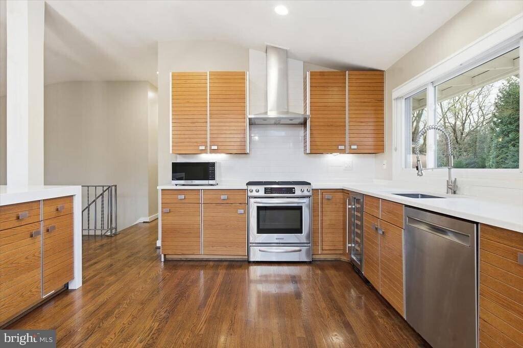 Available for immediate occupancy, this beautifully updated mid-century modern home in the heart of McLean/Rosemont offers great natural light, open space, and a comfortable layout on a quiet street. The main level has a primary bedroom with an en-suite bathroom with double sinks and plenty of closet space, along with a family room with a fireplace, extra storage, and a laundry room. The gourmet kitchen features stainless steel appliances, a beverage fridge, Corian countertops, and a large island that opens to the dining area and living room, with French doors leading to a spacious deck and private backyard. Upstairs is a second primary bedroom with its own en-suite bathroom, plus two additional bedrooms and a hallway bath. The home includes two fireplaces, vaulted ceilings, hardwood floors, recessed lighting, and garage storage. Conveniently located near Tuckahoe Recreation Club, Lewinsville Park and the Farmer’s Market, and in the McLean High School pyramid, with easy access to multiple grocery stores, restaurants, metro stops, downtown McLean, Tysons, DC, and more. This is an ideal spot for anyone who wants a calm, community-oriented place to live without giving up quick access to city life.