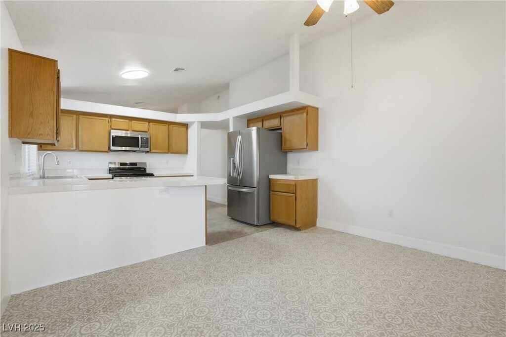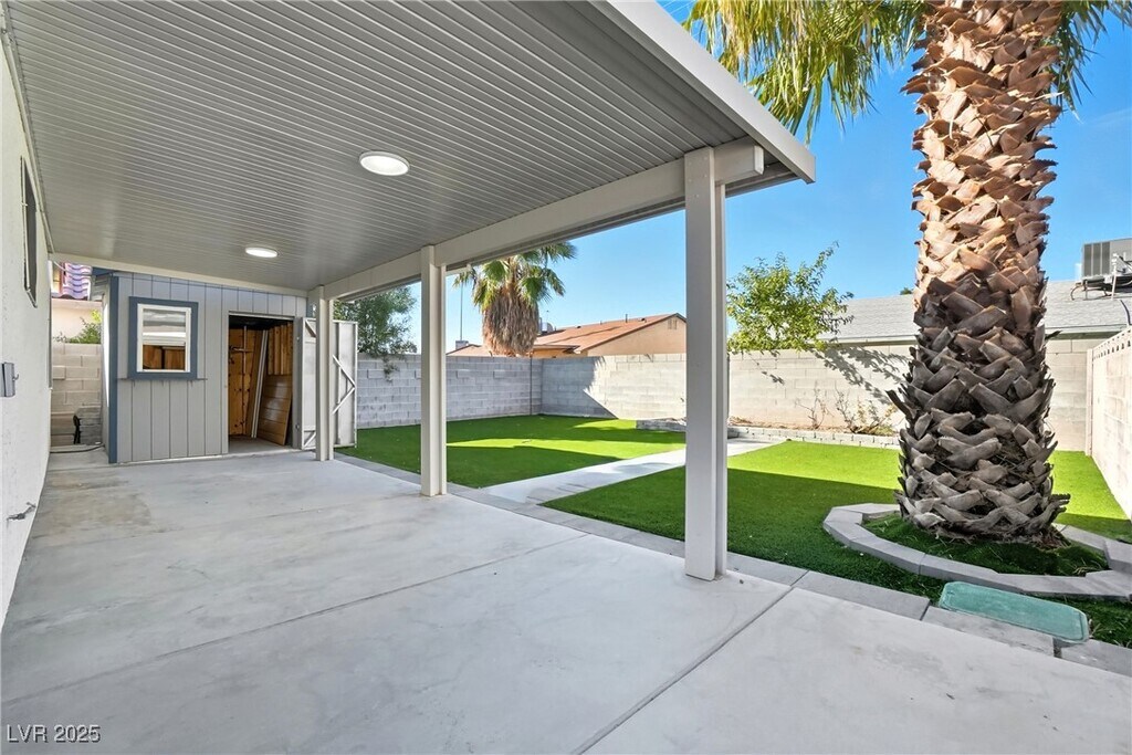 Beautiful 3-bedroom, 2-bathroom home located in Las Vegas, NV. This home boasts a cozy fireplace in the living room, perfect for those cooler evenings. The kitchen has upgraded stainless steel appliances. The separate laundry room comes complete with a washer and dryer for your convenience. The primary bathroom is a haven of relaxation with a dual sink and a shower/tub combo. The home features tile floors throughout, adding a touch of elegance and ease of maintenance. The primary bedroom comes with dual mirrored wardrobe closets, providing ample storage space. Step outside to a large backyard, beautifully maintained with artificial turf, perfect for outdoor activities. A storage shed in the backyard adds to the home's functionality. **As an extra added perk, Trash, Sewer and Tenant Portal Fee are included in rent!