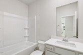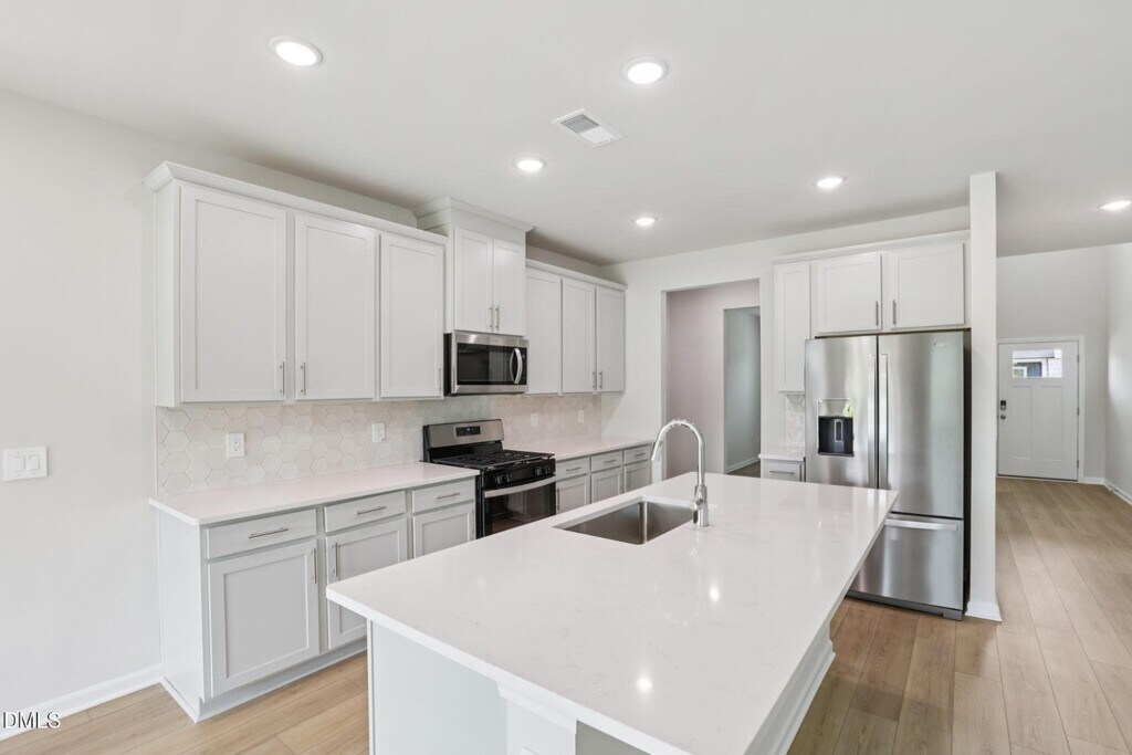Spacious 5-Bedroom, 3-Bath Single-Family Home featuring a highly desirable floor plan with one bedroom and full bath on the main level. Enjoy a large loft area perfect for a second living space, office, or playroom. The modern kitchen offers stainless steel appliances, quartz countertops, a large center island, and recessed can lighting. Luxury vinyl flooring flows throughout the first floor for style and easy maintenance. Generous walk-in closets, dual vanity in the primary suite, and plenty of storage. Brand-new washer, dryer, and refrigerator included.