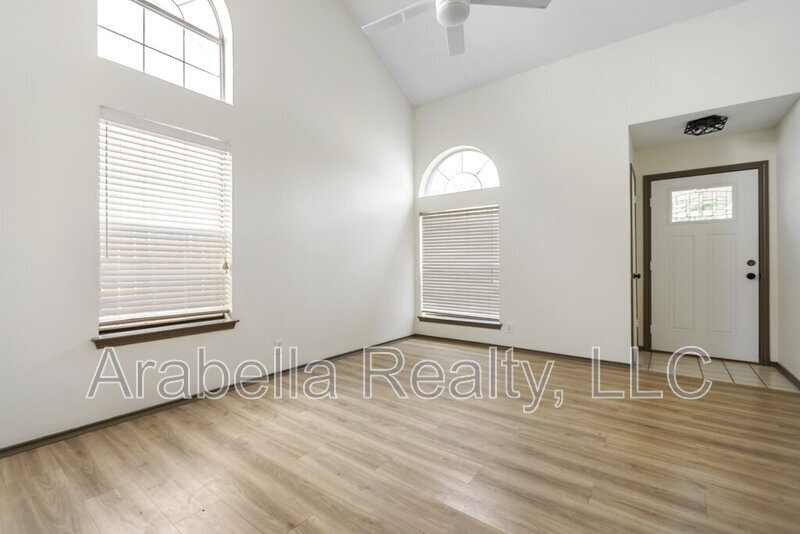 This beautiful 3-bedroom, 2.5-bathroom two-story home offers comfort, charm, and modern updates throughout. Enjoy soaring ceilings and a cozy fireplace, new flooring downstairs, and a patio perfect for relaxing or entertaining. Nestled in a quiet neighborhood with only one way in and out, this home provides peace and privacy while still being close to everyday conveniences. Large windows in the primary suite fill the space with natural light, while the laundry room on the main floor adds convenience to your daily routine. Washer, dryer, water softener, and solar panels are all included, helping you save on utilities and move in with ease. With spacious bedrooms, ample storage, and an inviting layout designed for both comfort and function, this home is the ideal blend of style and practicality for your next move.