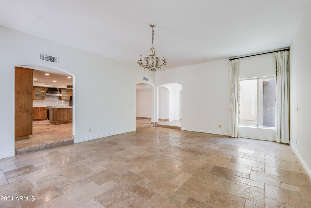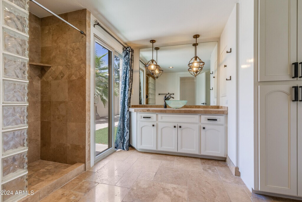 Hands down the best location in town! Walk out the secret back gate to all things Scottsdale Waterfront! Villa Adrian is a well kept secret of European inspired villas with gorgeous community grounds and pools. This one is a single level with large living spaces and great flow. The large family room is anchored by a wood burning fireplace and access to the backyard. The kitchen is fully remodeled with high end cabinets,quartz counters and gorgeous commercial appliances. The primary bedroom is split with doors to the back and the bath is spectacular with double vanities,soaking tub and large shower. 2 additional beds and an office. Large 2 car garage and charming courtyards with artificial turf and large trees for shade while entertaining. Great opportunity to move right on in!
