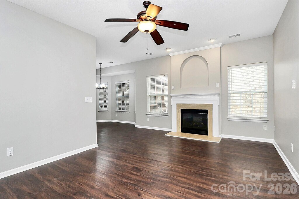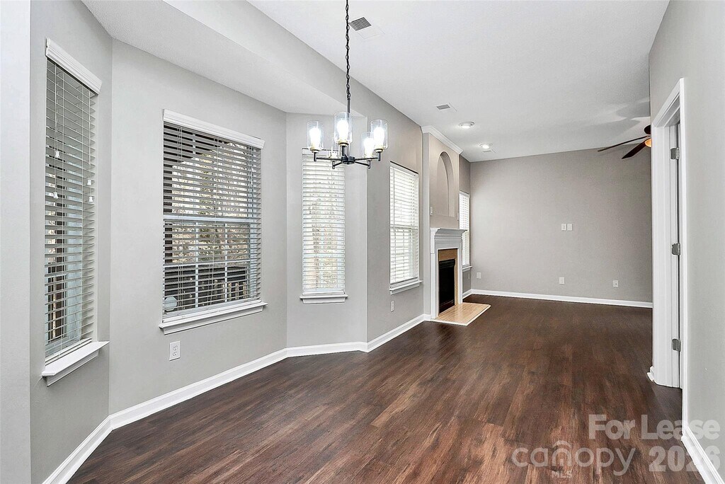 Welcome to this beautifully maintained home in the highly desirable University area of North Charlotte. This spacious 3-bedroom,2.5-bath,2 car garage residence offers a bright,open layout designed for comfortable living and effortless entertaining. The interior features updated light fixtures and laminate wood flooring throughout,with no carpet. The main level includes a welcoming living room with abundant natural light,a formal dining area,and a well-appointed kitchen featuring ample cabinetry and BRAND-NEW granite countertops. An additional breakfast area leads to a spacious family room equipped with a gas fireplace and ceiling fan. Upstairs,the generous primary suite with a tray ceiling offers a walk-in closet and a private bathroom with a dual vanity,separate shower,garden tub,and skylight. Two additional bedrooms and a full hall bathroom complete the second floor. For outdoor living,the back screened-in porch overlooks a peaceful,tree-lined yard—ideal for relaxing or hosting guests. Located on a quiet cul-de-sac just minutes from shopping,dining,parks,and major commuter routes including I-85,I-485,and I-77,this home offers both convenience and charm. The property is move-in ready and available for immediate occupancy. Don’t miss this fantastic rental opportunity! MLS ID CAR4349660
