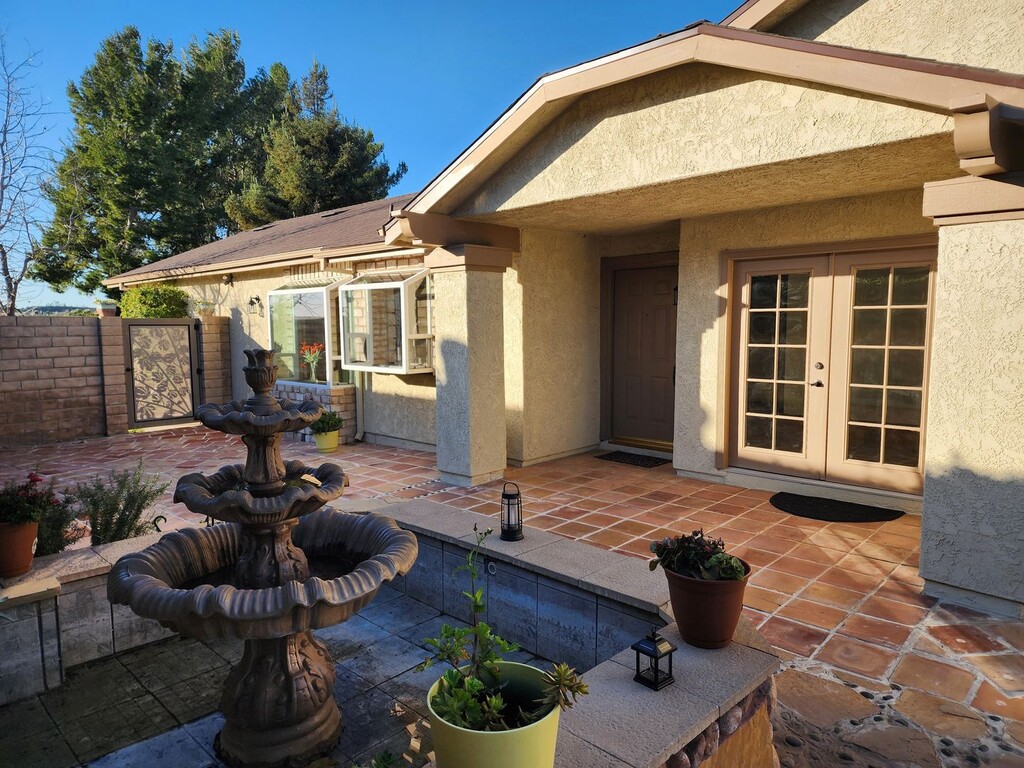 Welcome to this beautiful Moorpark residence, where breathtaking mountain and ocean views create a stunning backdrop for everyday living. Enjoy unforgettable sunsets that fill the home with warmth and color, enhancing the natural light that flows throughout each space. The spacious kitchen is thoughtfully designed with stainless steel appliances, ample cabinet space, and striking stone accents on the walls, adding texture and character while creating a warm, refined feel. The living room offers a cozy fireplace, perfect for relaxing evenings while taking in the surrounding scenery. The primary suite serves as a private retreat, featuring a walk-in closet, an en suite bathroom, and elegant French doors that open directly onto the backyard patio. Step outside to a large, tranquil patio with a decorative fountain, ideal for entertaining, unwinding, or enjoying quiet moments. Additional highlights include an attached garage and a calm, well-designed backyard that complements the home’s serene atmosphere. With its incredible views, abundant natural light, and seamless indoor-outdoor living, this home offers a rare opportunity to enjoy comfort, beauty, and tranquility in Moorpark.
