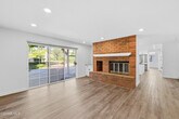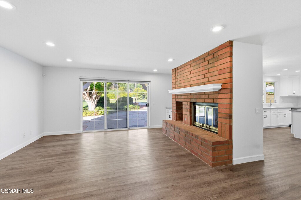 Situated on a tree-lined street in one of Camarillo's most desirable neighborhoods, this beautifully remodeled residence offers an exceptional blend of elegance and comfort. A striking spiral staircase sets the tone for the home, complemented by fresh interior paint, plantation shutters, and recessed lighting throughout. The home welcomes you into a bright, naturally lit space, highlighting updated LVP flooring and plush carpet. The main level features two distinct living rooms, each accented by its own gas fireplace, providing versatile areas for both formal entertaining and everyday living. One living room flows into the formal dining area, creating an inviting setting for gatherings. The kitchen has been thoughtfully updated with modern cabinetry, stainless steel appliances, refined quartz countertops, and a casual dining space with sliding doors that open to the spacious entertainer's backyard. The outdoor area features a large, well-maintained grass lawn, a basketball court, and mature, producing lemon trees, offering ample room for recreation, play, or hosting guests. The front yard also boasts a generous grassy area, enhancing curb appeal and creating a welcoming approach. The second living room includes a wet bar and a sliding door that opens directly to the backyard, ideal for entertaining or relaxing. The main level also includes a bedroom with an en suite bathroom, an interior laundry room, and direct access to a three-car garage. Upstairs features two generously sized bedrooms in addition to the primary retreat, which showcases triple sliding doors and a private balcony. The renovated en suite bathroom features a soaking tub, luxurious designer finishes, and dual walk-in closets. Don't miss the opportunity to make this impressive home yours.