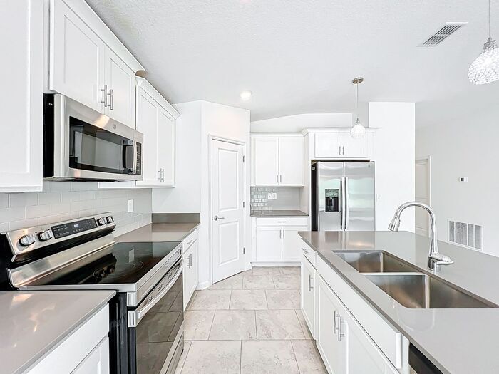 Welcome to your new home in the tranquil Trinity Lakes community of Groveland. This beautifully maintained 4-bedroom, 2-bath residence at 6946 Perch Hammock Loop offers modern comfort with a spacious open floorplan, tile throughout the living areas, and plush carpet in the bedrooms for added warmth. The bright, open-concept kitchen and inviting living spaces are perfect for both entertaining and everyday relaxation. This home features solar panels to offset utility costs. Life at Trinity Lakes feels like a resort getaway, with amenities that include a zero-entry swimming pool with splash pad, a state-of-the-art fitness center and clubhouse, a lakeside park with dock and covered wildlife viewing platform, a children’s playground, scenic walking trails, and a dog park. Conveniently located near the Florida Turnpike, this home provides easy access to Orlando’s world-class attractions such as Walt Disney World Resort, Universal Orlando Resort, and SeaWorld Orlando, along with premier shopping, dining, sports venues, and outdoor adventures. Just 30 minutes from downtown Orlando, this property offers the perfect blend of leisure, convenience, and lifestyle. Don’t miss the opportunity to make this charming home yours—schedule a tour today. Contact us to schedule a showing.