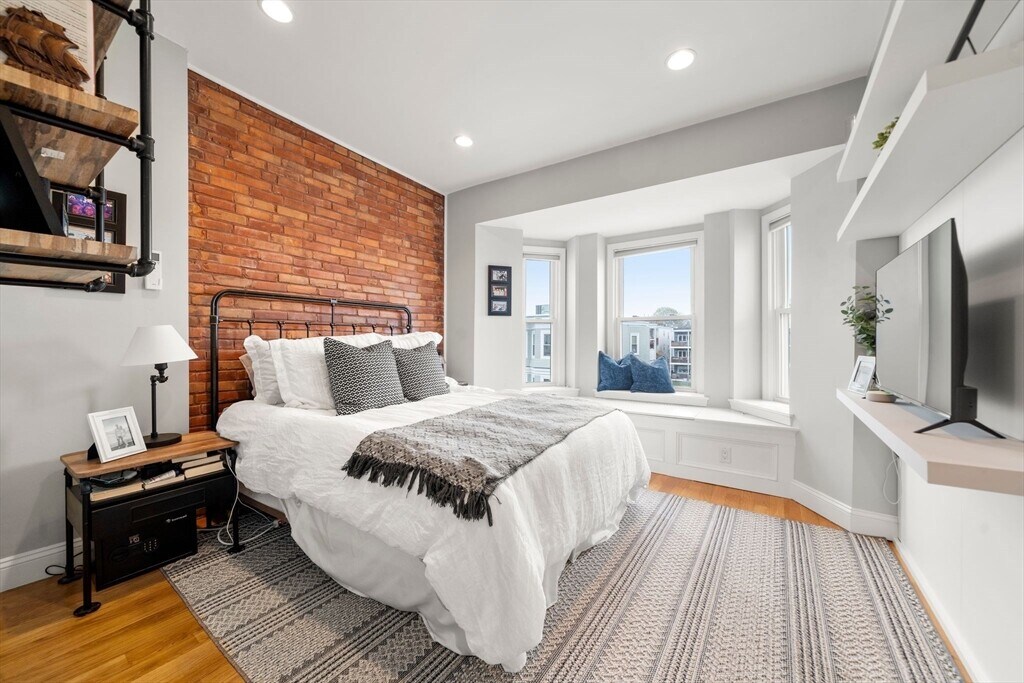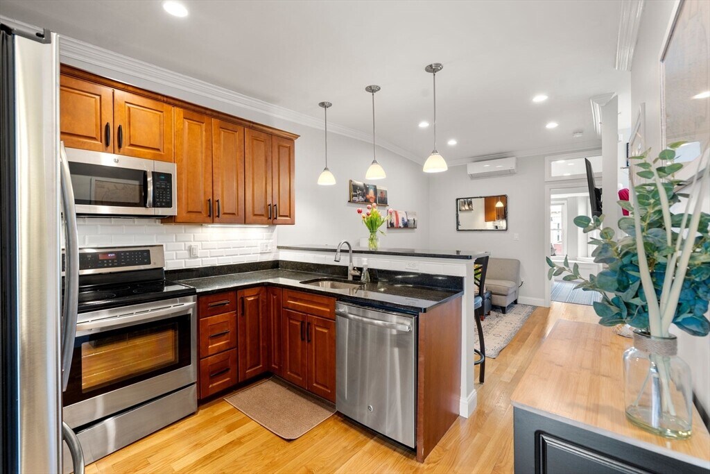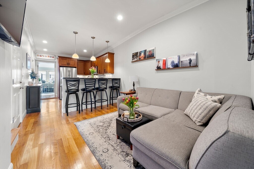 Welcome to this penthouse unit on the East side of Southie! This floor-through condo offers a clean,modern layout with thoughtful details throughout. The home includes a spacious primary bedroom and a second room perfect for a gym or office,making it easy to adapt to your needs. The kitchen features granite countertops,stainless steel appliances,and a breakfast bar that opens to the living area. High ceilings,hardwood floors,crown molding,and recessed lighting add to the overall feel,while central air and an in-unit washer/dryer bring everyday convenience. The bedroom has nice character with exposed brick and a custom window seat and a walk in closet with amazing storage. The spacious bathroom includes a walk-in shower with dual jets. The best part is the private roof deck that offers an impressive 360-degree views of the water and the city skyline! MLS# 73501337