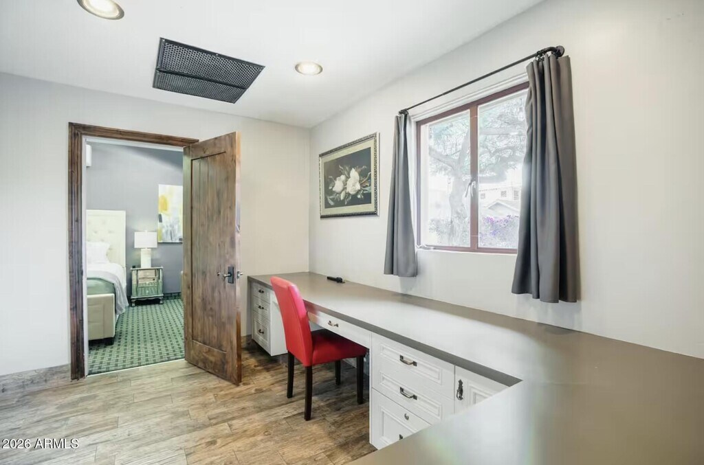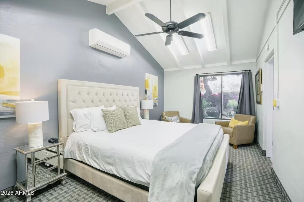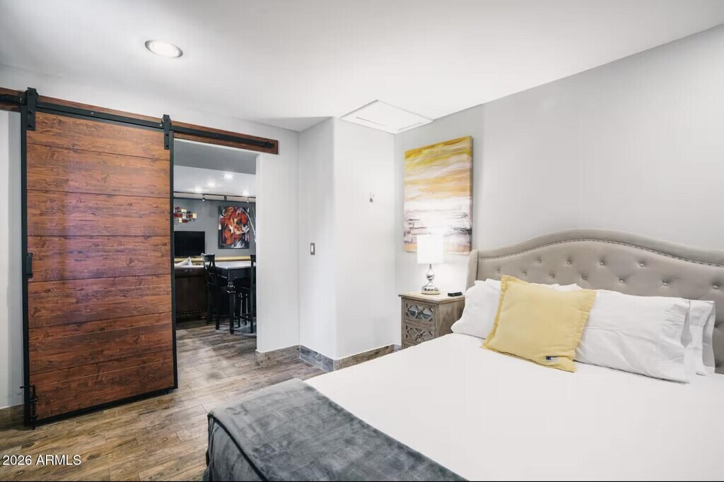 This Old Town Scottsdale estate features beautifully restored vintage homes with multiple suites,located on the corner of 1st Street and Goldwater in the heart of the Old Town Arts District. Enjoy a highly walkable location just steps from art galleries,shops,restaurants,wineries,breweries,Alo Café,Cornish Pasty,and the seasonal Farmers Market. Downtown Main Street is one block north,with access to the free Scottsdale Trolley and easy connection to Scottsdale Fashion Square. This spacious suite offers a private entrance with a landscaped north-facing patio,modern Southwest décor,and 1,109 sq. ft. of private interior living space. Sleeps up to 6 with a king bedroom,queen bedroom,attached office,galley kitchen with appliances,large family room,and ¾ bath. On-site parking.