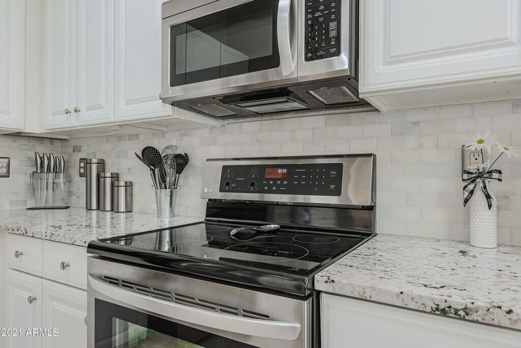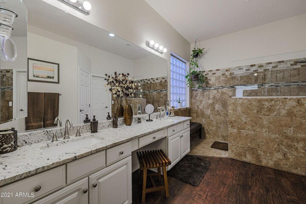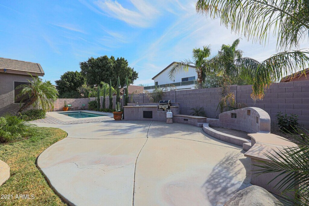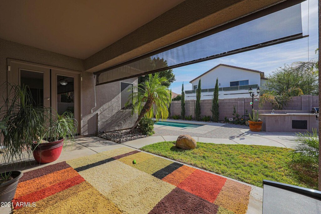 Charming single level 4 bed 2 bath home in the highly sought after Terramar community in North Peoria. ++NO CARPET++ ALL REAL HARD WOOD & tile flooring++ Immaculately maintained, neutral paint tones, upgraded window coverings, open kitchen floor plan with ALL stainless steel appliances with neutral gray/white toned counters, cabinetry, and backsplash. High end washer and dryer included. Fans in living areas make for lower electric bills! Gorgeous bathroom remodels with dual vanities in both and tiled walk in master shower. The backyard retreat features a large covered patio space with additional screen for privacy and temperature control, built in kitchen with propane grill and sink. Pool maintenance included! MUST SEE !!