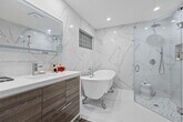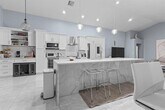 Beautifully renovated 3-bedroom, 2-bathroom home featuring marble floors throughout and soaring vaulted ceilings. The property offers impact-resistant windows and doors, custom built-in closets, and exceptional attention to detail. The gourmet kitchen showcases quartz countertops, a massive waterfall island, and stainless steel appliances—perfect for entertaining. Both bathrooms have been fully renovated with designer tile finishes. Step outside to a travertine-tiled backyard complete with a built-in outdoor grill. With over $300,000 in upgrades, this home truly spares no expense. MLS # A11945511