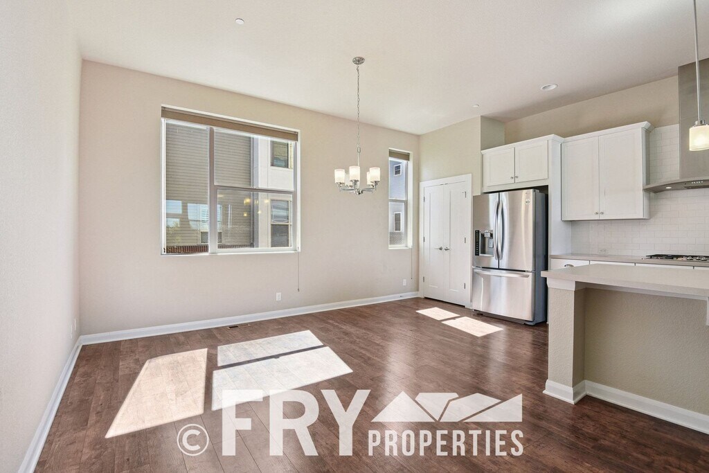Awesome location in the Heart of Belmar! 3 bedroom 3.5 bath multi-level townhome with a vaulted ceiling entryway and first floor bedroom with ensuite bath. Heading up one level is the bright, open kitchen that opens up onto a large balcony. The kitchen is spacious with lots of natural light, stainless steel appliances, updated cabinets and countertops, island, and large eat-in space. Sun-filled living area, and powder room round out this floor. The third floor features the primary bedroom with beautiful bathroom, walk-in closet, and second spacious covered deck. Also on this level is the another bedroom with its own en-suite bath, and laundry room. Washer/dryer and large 2 car attached garage and room for storage. Parks and open spaces are just a short walk away. Live just steps to the trendy Belmar shopping complex with excellent dining, shopping, parks, and entertainment. Easy commute to downtown Denver and the mountains. Contemporary design with energy saving items throughout. You can't beat this location ****Please submit applications through the Fry Properties website. Portable tenant screening reports will be accepted if they meet the requirements and application fee will be refunded. Please contact a Fry Properties representative if you have any questions. www.fry- Brokerage License: EC100067531